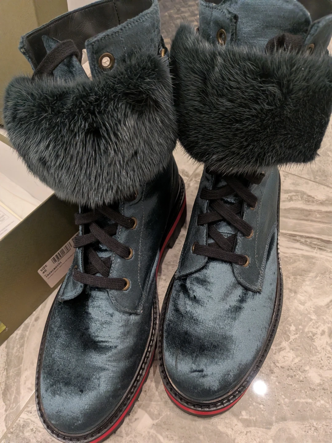 These Mr & Mrs Italy boots are in great condition and come with the original box, dust bag and packaging! They feature a unique mink fur trim, adding a touch of luxury to your footwear collection and water repellent. The boots have a stylish design and are made with high-quality materials for durability and comfort. Size 40 (normally size 9 sneakers)