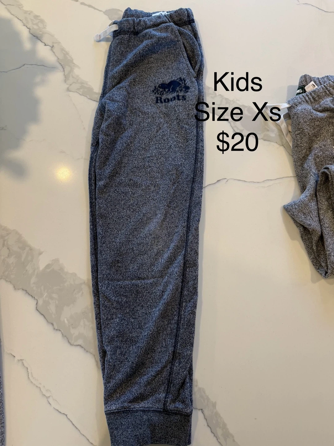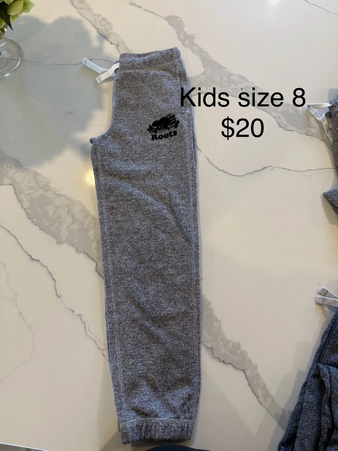Selling a variety of Roots kids joggers and shorts! Available in sizes XS, 8, 14, and S (14-16). They are all grey and in great condition.