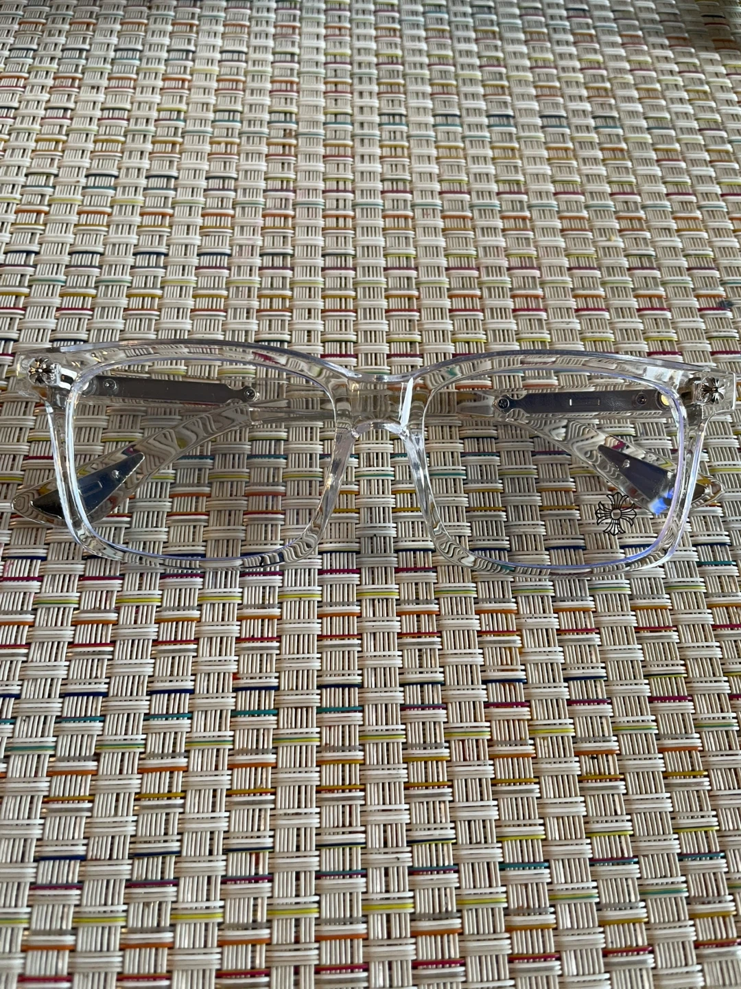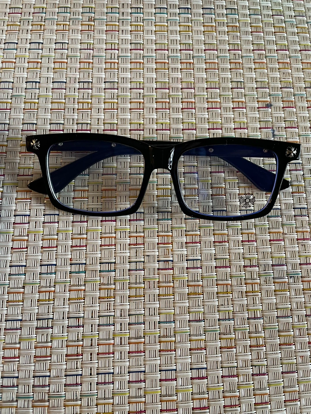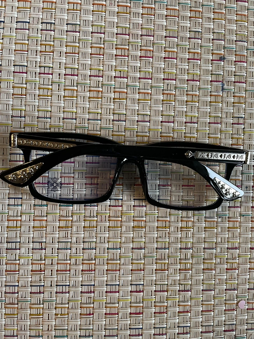 Selling a pair of Chrome Hearts eyeglasses. They are in great condition and feature the brand's signature design elements. The frames are black with silver accents. Stylish and unique!
