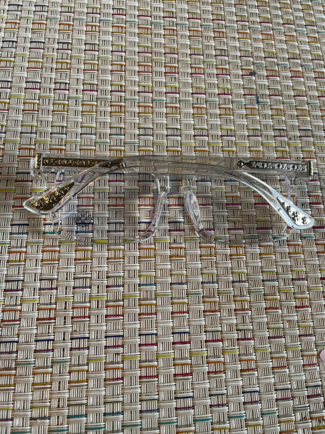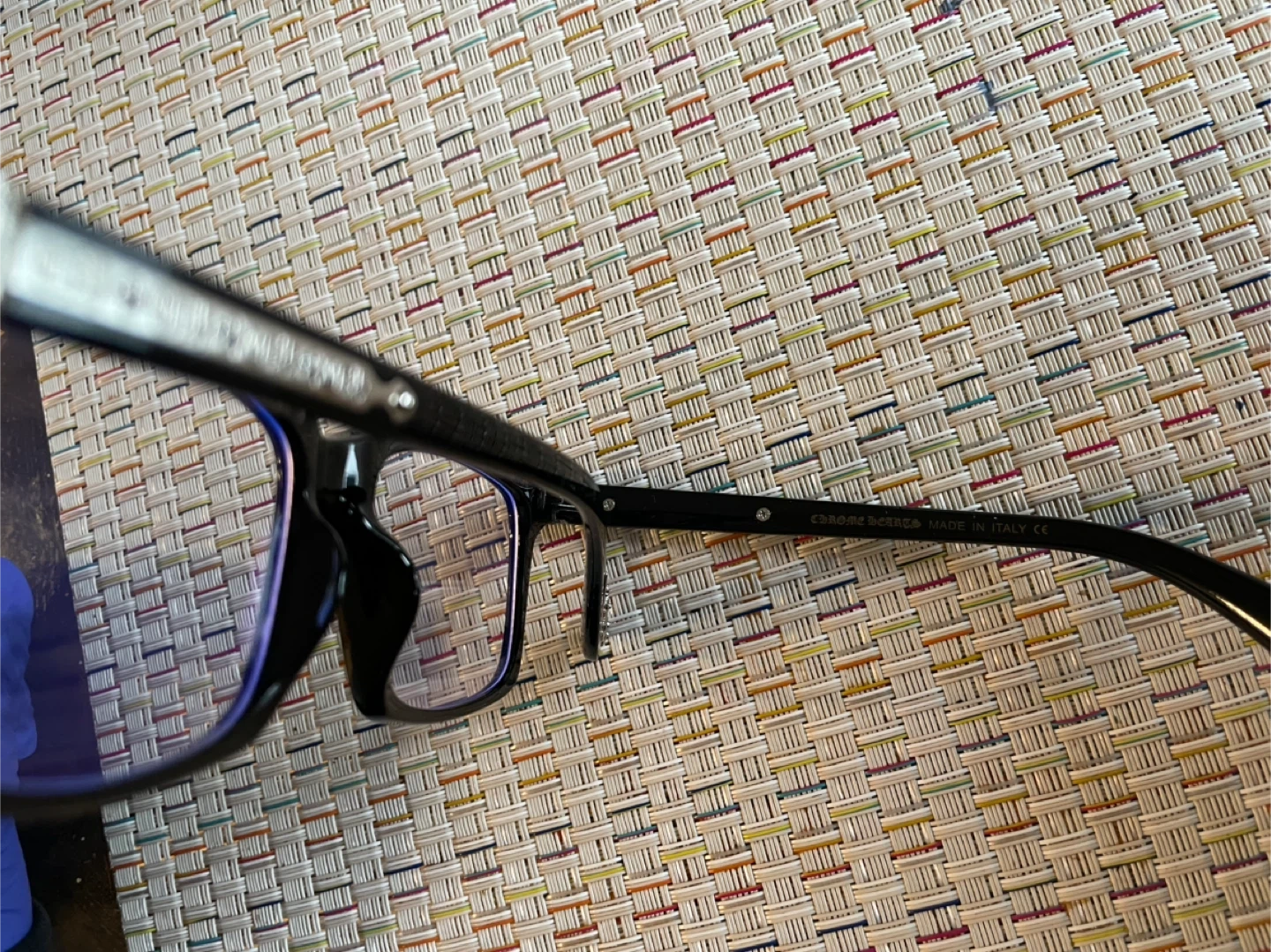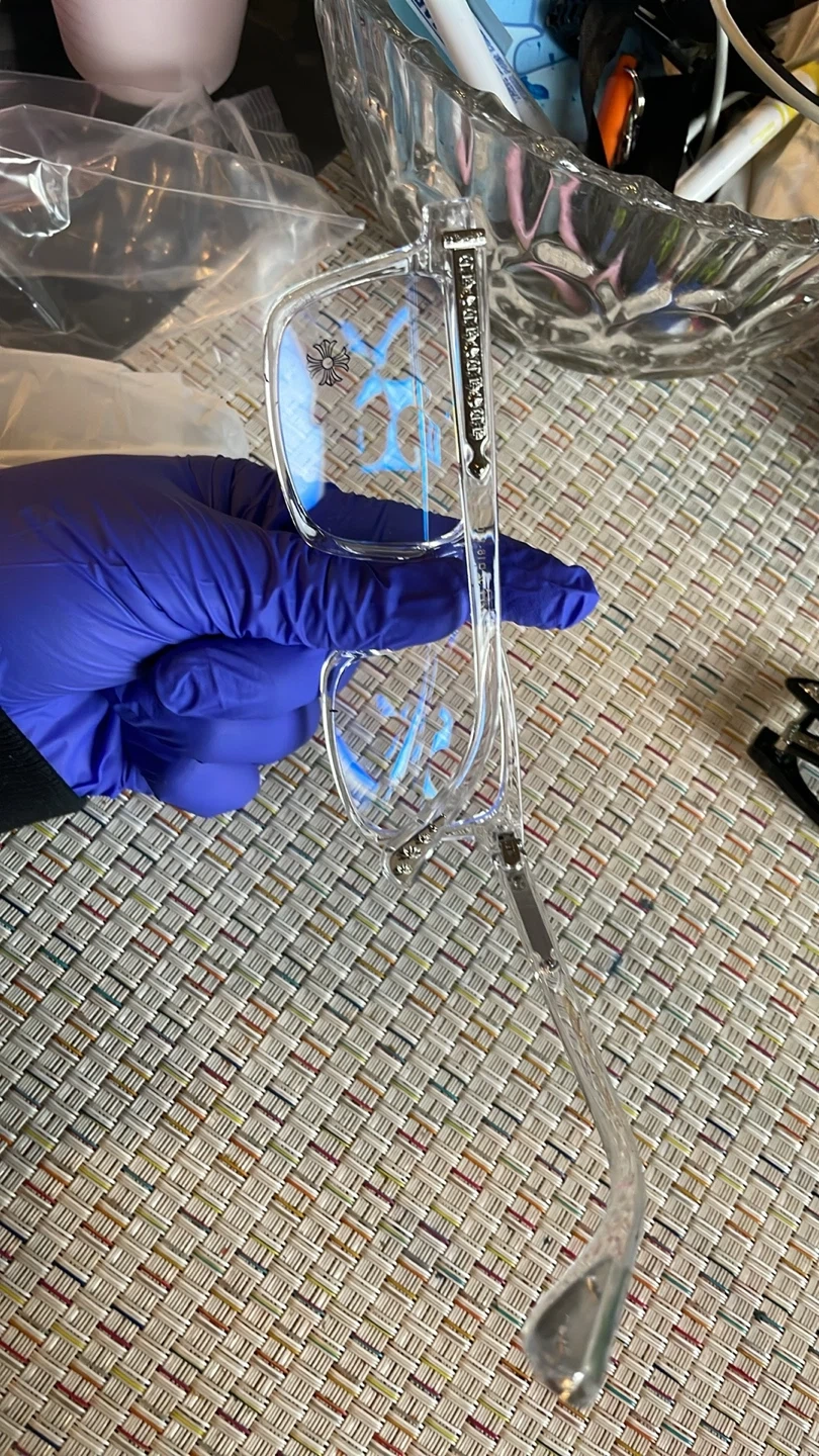 Selling a pair of Chrome Hearts eyeglasses. They are in great condition and feature the brand's signature design elements. The frames are black with silver accents. Stylish and unique!
