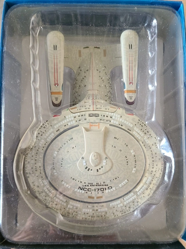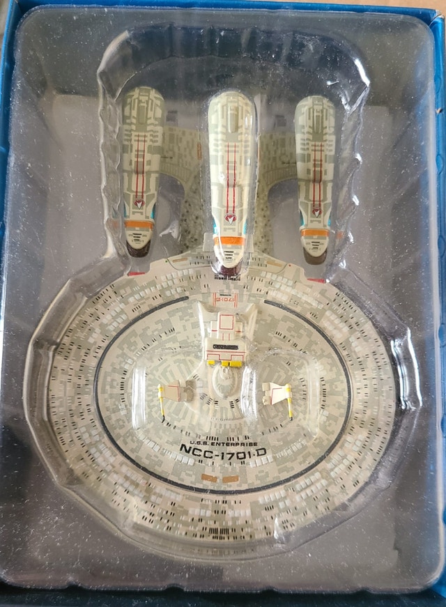 Star Trek Eaglemoss Official Starships Collection asking $35, produced in 2013. Ship is brand new in original box, which is also in new condition. It's a standard size, about 5.25 inches long, 3.25 inches wide, and 1.5 inches tall. Includes display stand. I also have USS Enterprise Original NCC-1701, NX-01 Enterprise 1701 D, and Enterprise 1701 D - Triple Tri-nacelle Enterprise-D. Let me know if you're interested!