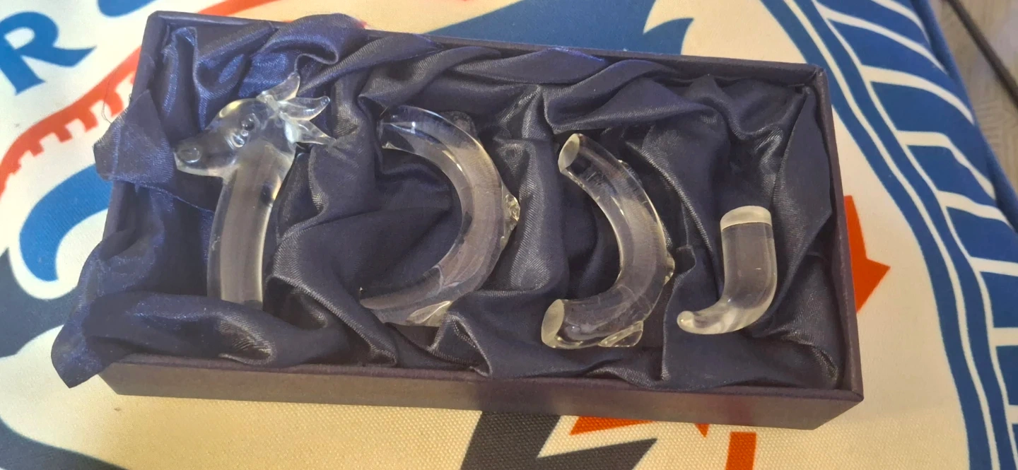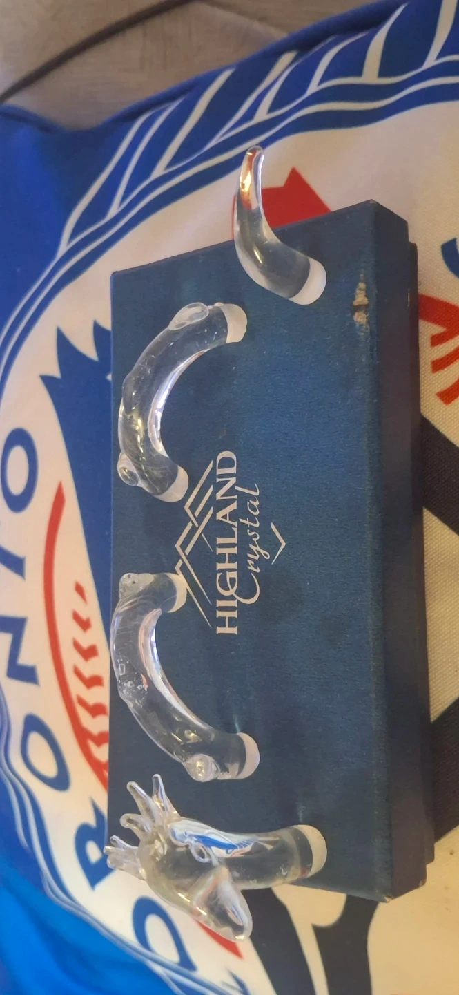 Selling a beautiful set of Highland Crystal nessie. comes in the original box with a silky blue lining. Perfect for adding a touch of elegance to your home decor!