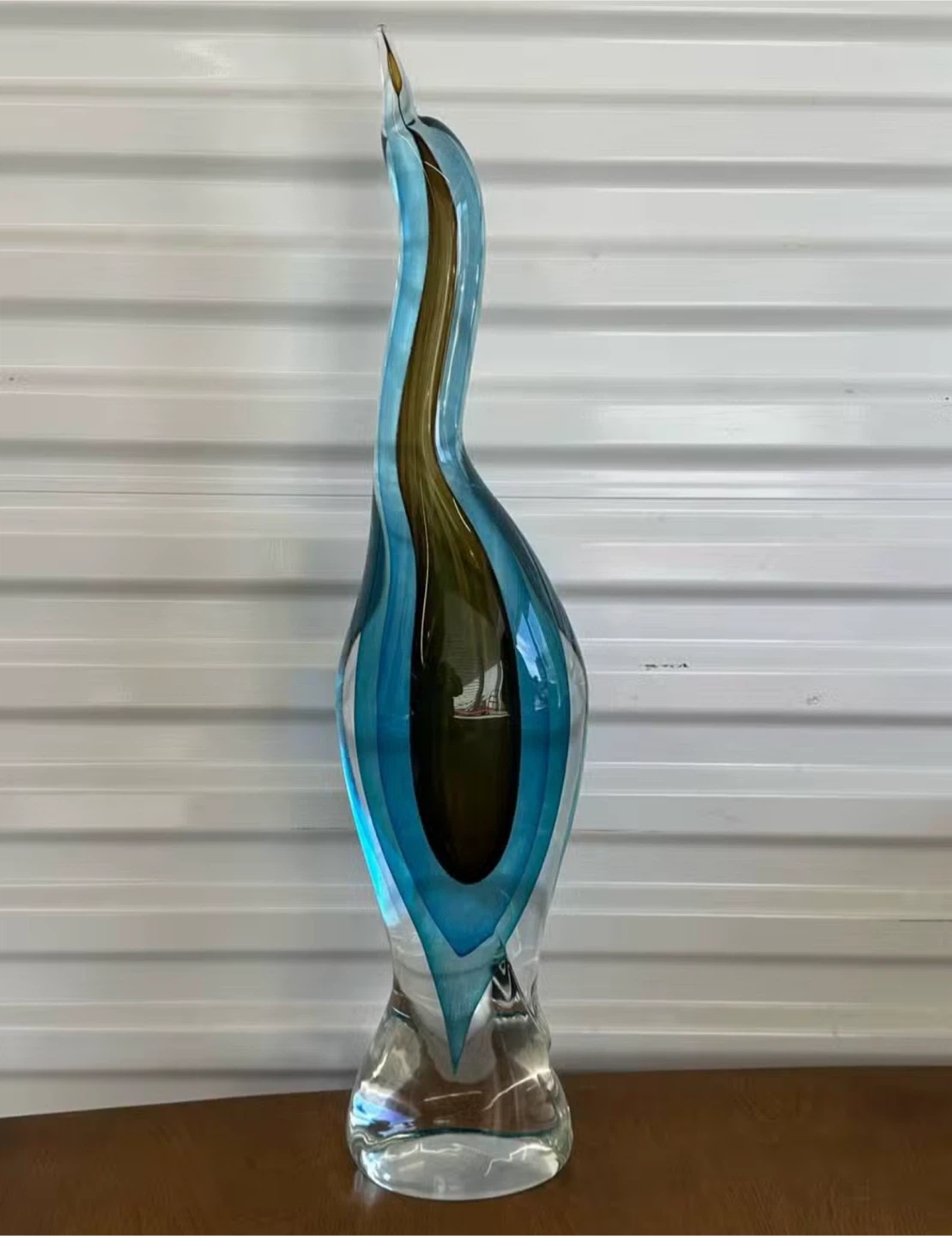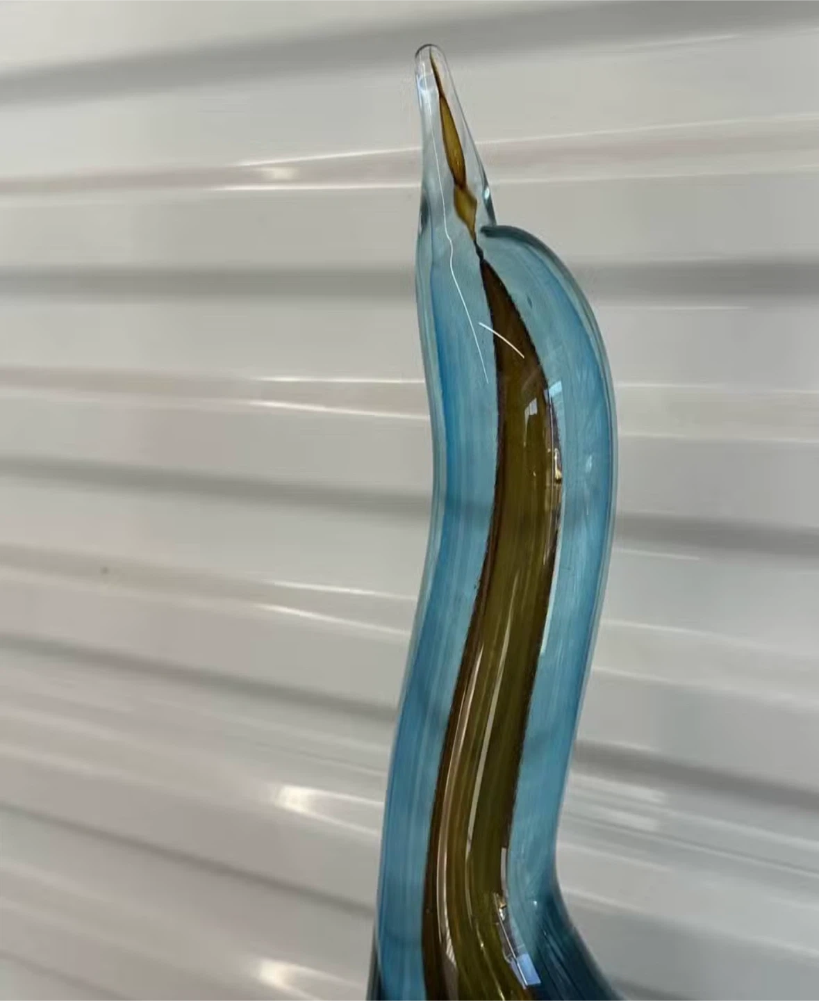 Beautiful Murano style art glass vase in the shape of a swan. The colours are a stunning combination of blue and clear glass. It would make a lovely addition to any home!