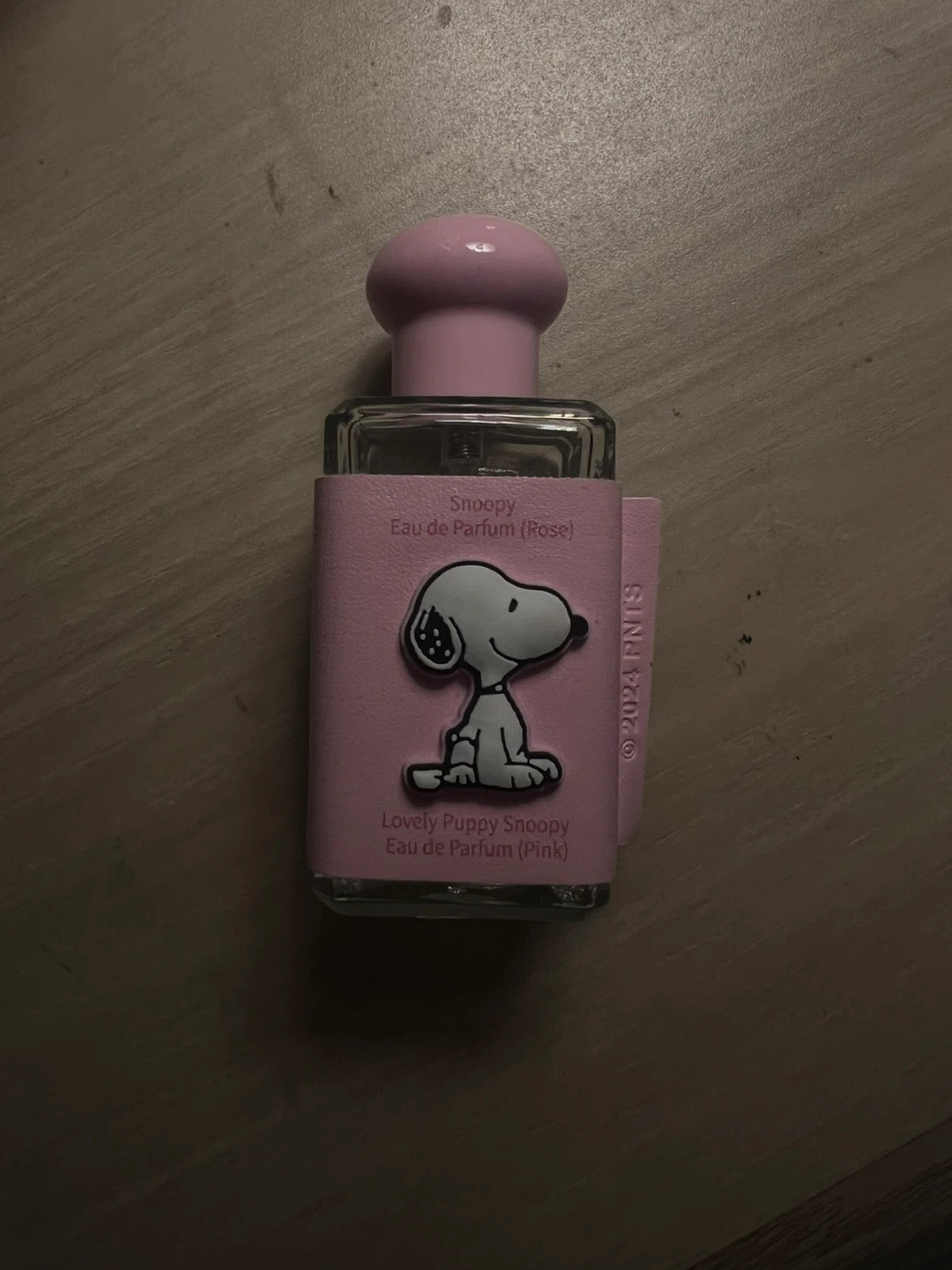 Selling a cute Snoopy Eau de Parfum! It's a lovely scent, perfect for everyday wear. Features Snoopy on a pink bottle. 'Lovely Puppy Snoopy Eau de Parfum (Pink)' and 'Eau de Parfum (Rose)' are printed on the bottle
