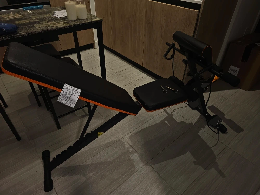 Selling an Perlecare adjustable weight bench in black and orange. Great for home workouts! It's in good condition and ready for its next owner. Perfect for various exercises and easily adjustable to different positions. Must pick up at my location.