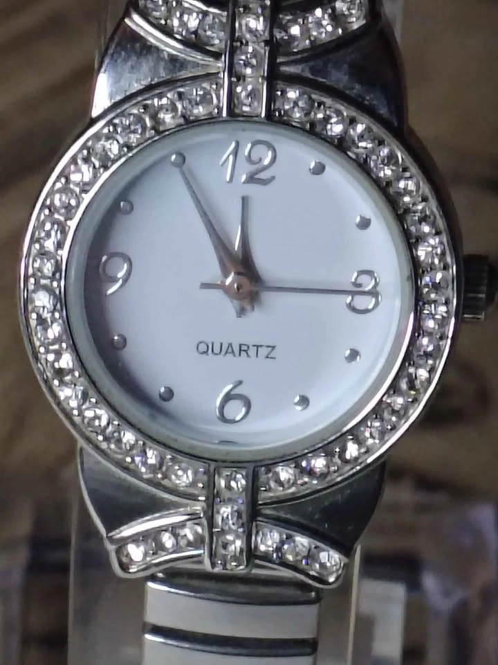 Beautiful rhinestone encrusted women's stainless steel watch. Working condition, new battery. Will include a small watch box.