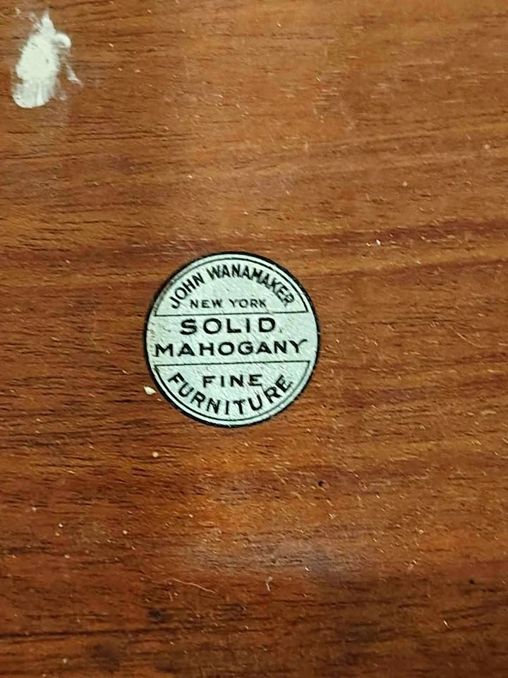 Early 20th century solid mahogany gateleg by John Wanamaker of New York. In fairly good condition other than needing a cleaning and it is missing the bolts that secure the tabletop.