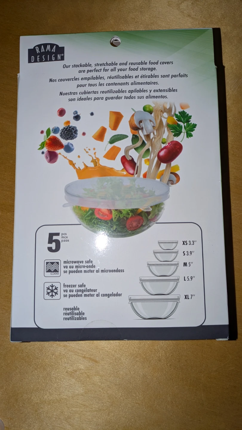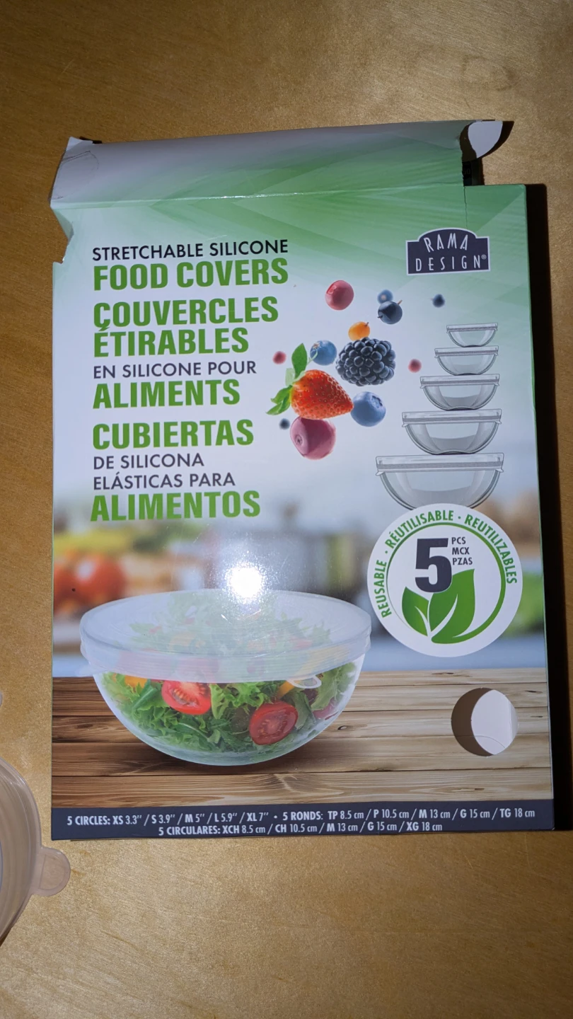 Selling a set of Rama Design stretchable silicone food covers! They are stackable and reusable, perfect for all your food storage needs.