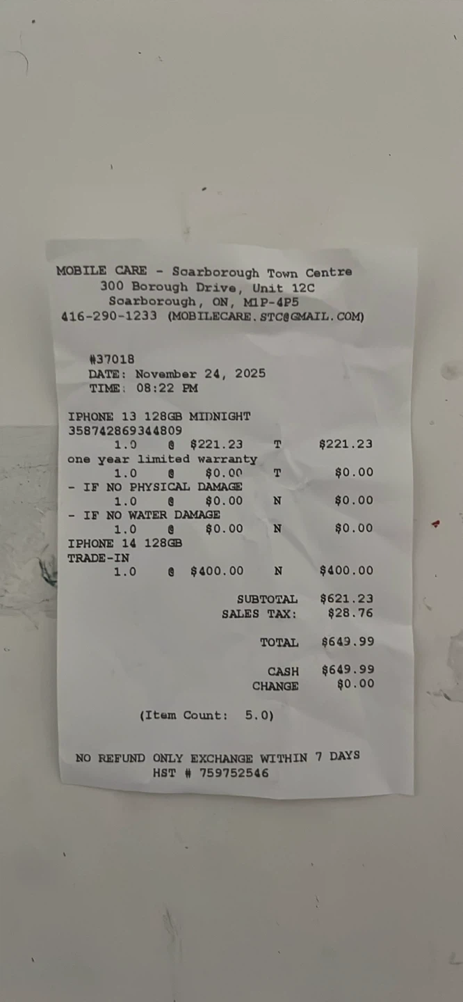 this is an open box IPhone 13 (no scratches) (128GB) (100% health) (only use for a couple of time) (come with the original box) (also come with the receip the store I bought it from)