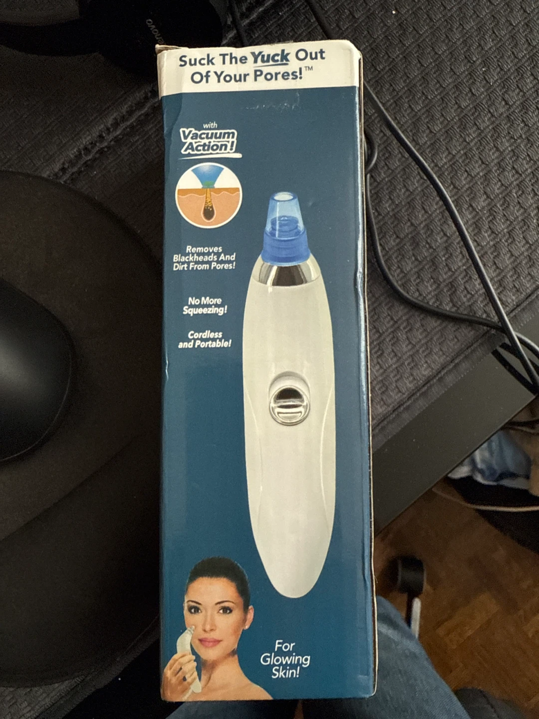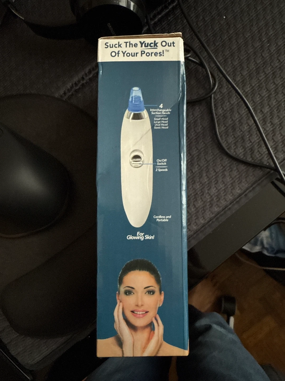 I'm selling a pore cleaner that helps remove blackheads and dirt from pores! It's cordless and portable so you can take it anywhere. It also comes with 4 interchangeable suction heads: small head, large head, oval head, and sonic head. Get glowing skin!