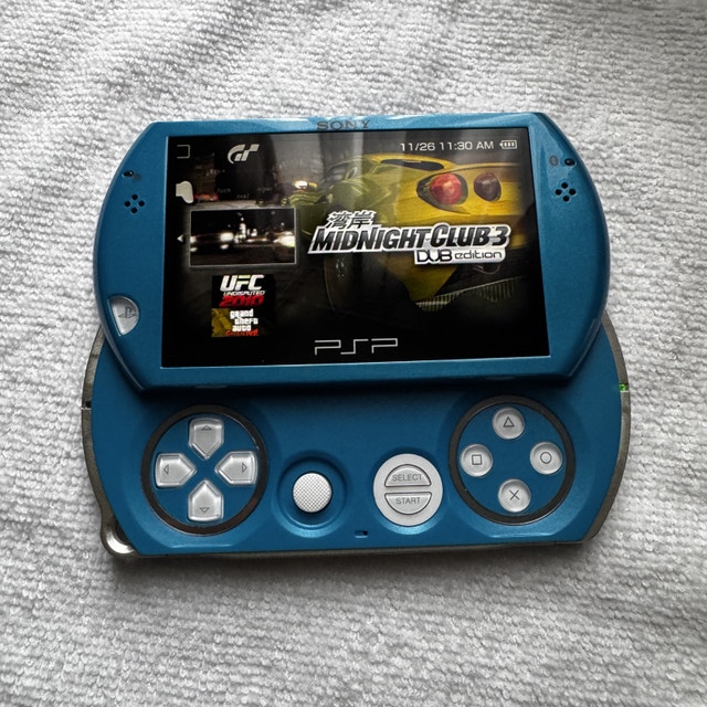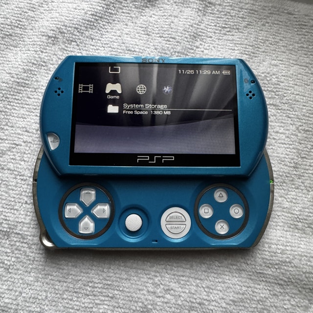 Selling a Sony PSP Go, which has been modded and reshelled with a unique blue casing. It's in good/like new condition, fully functional, perfect for anyone looking to enjoy classic PSP games on the go. Modded with Ark 4 * Model: PSP Go * Colour: Blue * Storage: 16GB Internal * Condition: Good