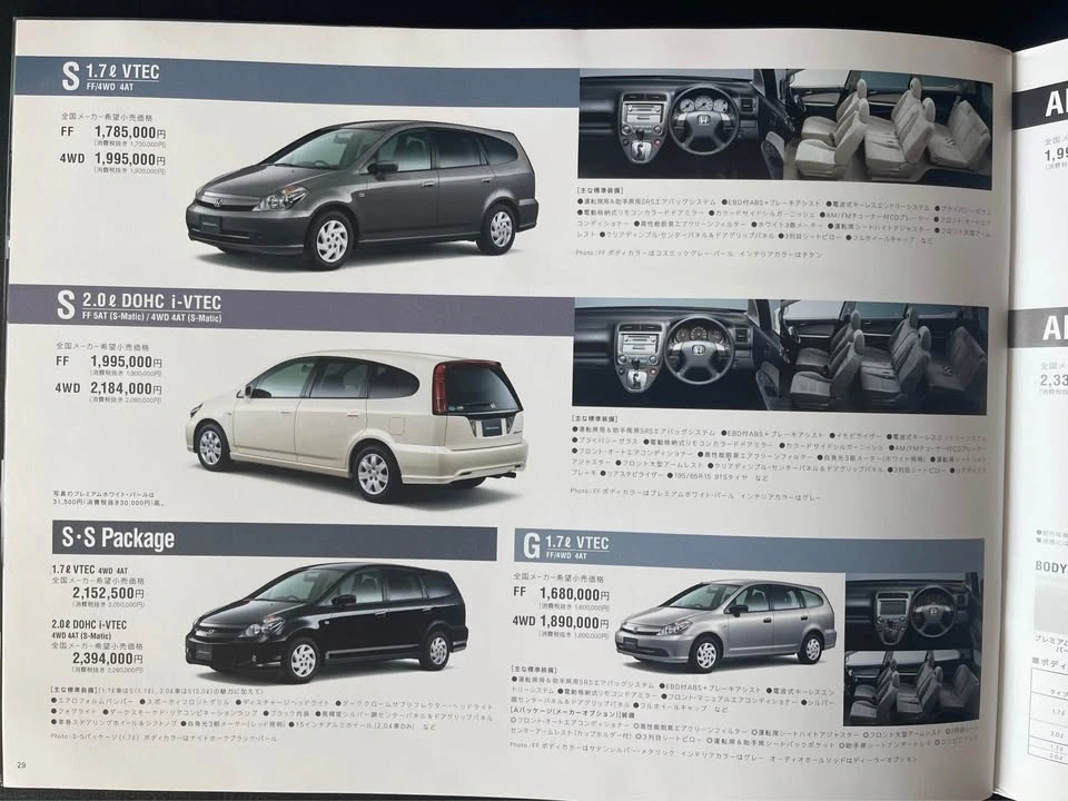 Offering this rare package of Honda Stream literature and tech: 2 Japanese sales brochures, 1 English owners manual for left hand drive, 3 CD set for parts and repair procedures, 1 die cast model in 1/43 scale....... all for $25. Pickup in Langford.