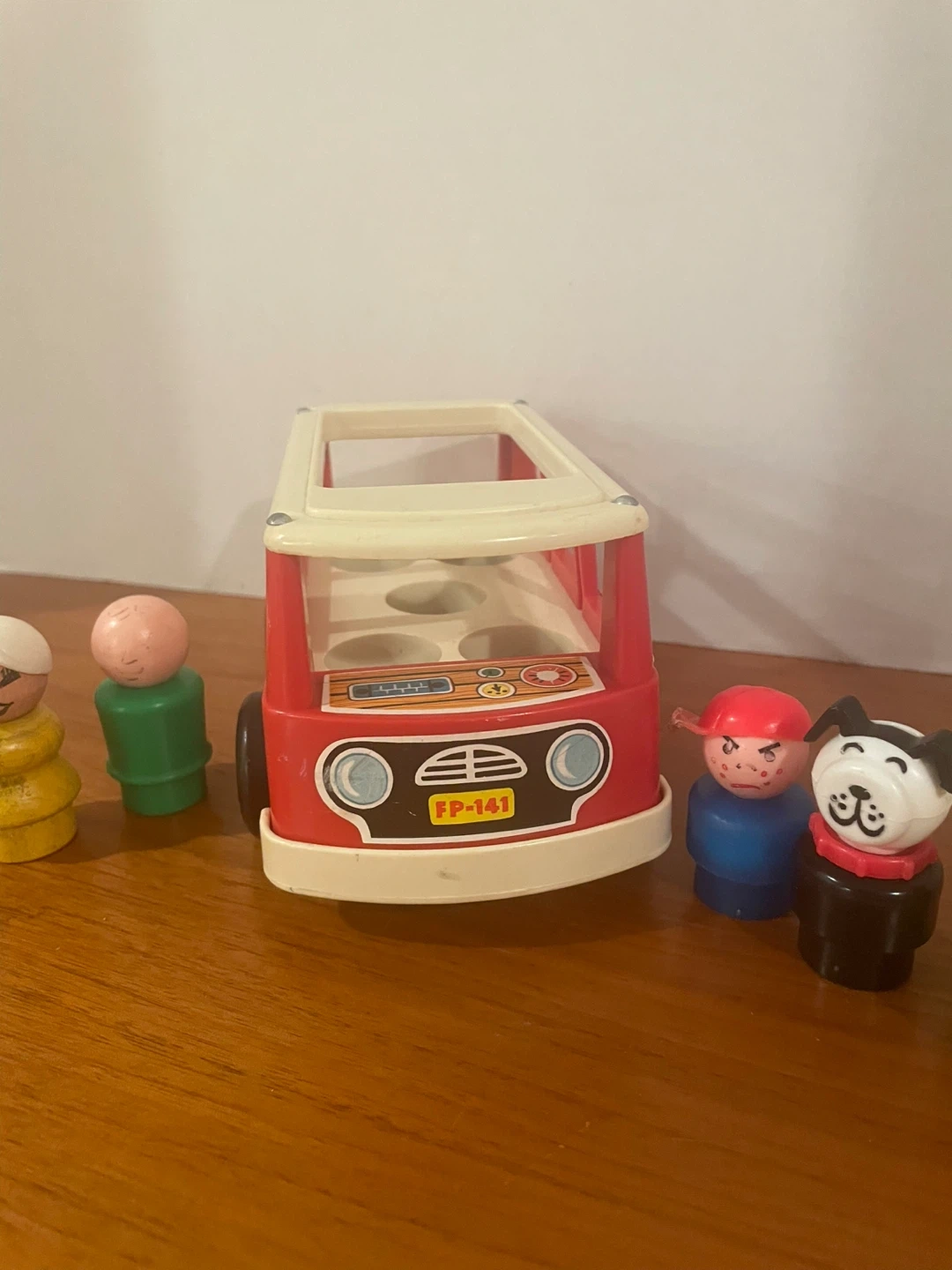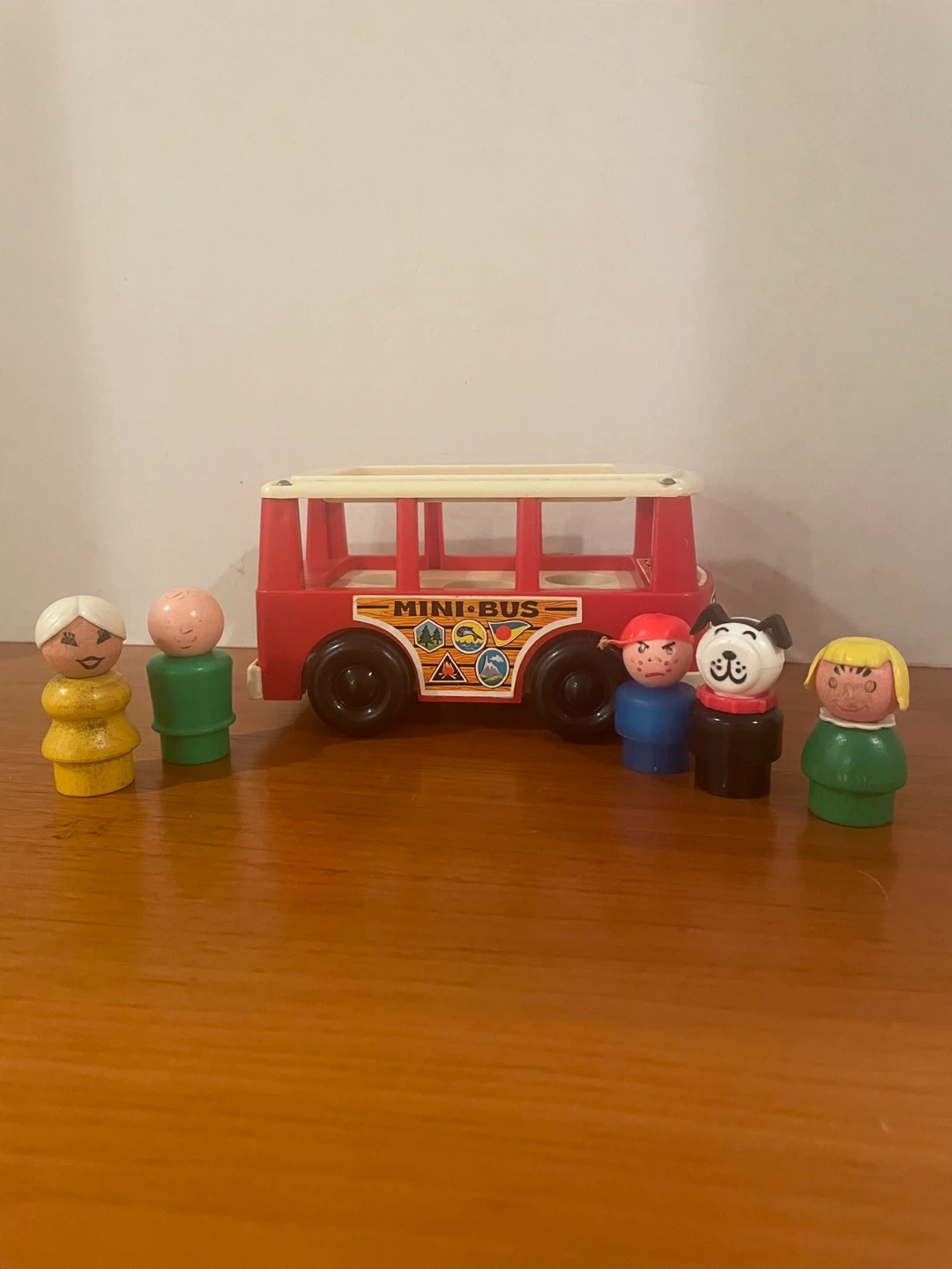 1969 Fisher-Price Little People Mini Bus with 4 people and dog