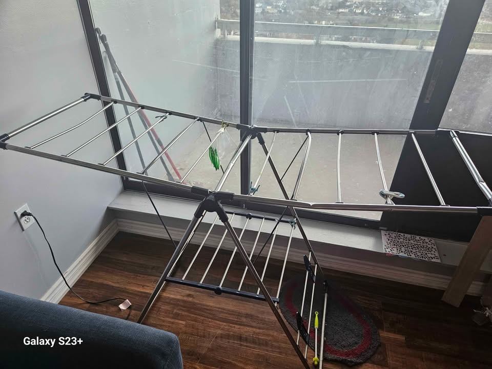 Selling a sturdy metal clothes drying rack perfect for indoor or balcony use.