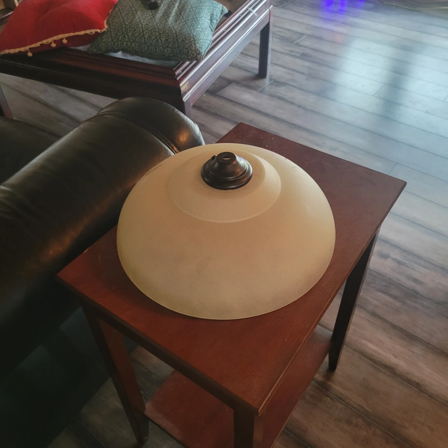 Selling a frosted glass light shade. It's in great condition and ready to brighten up your space! It has a classic look that would fit well in any room