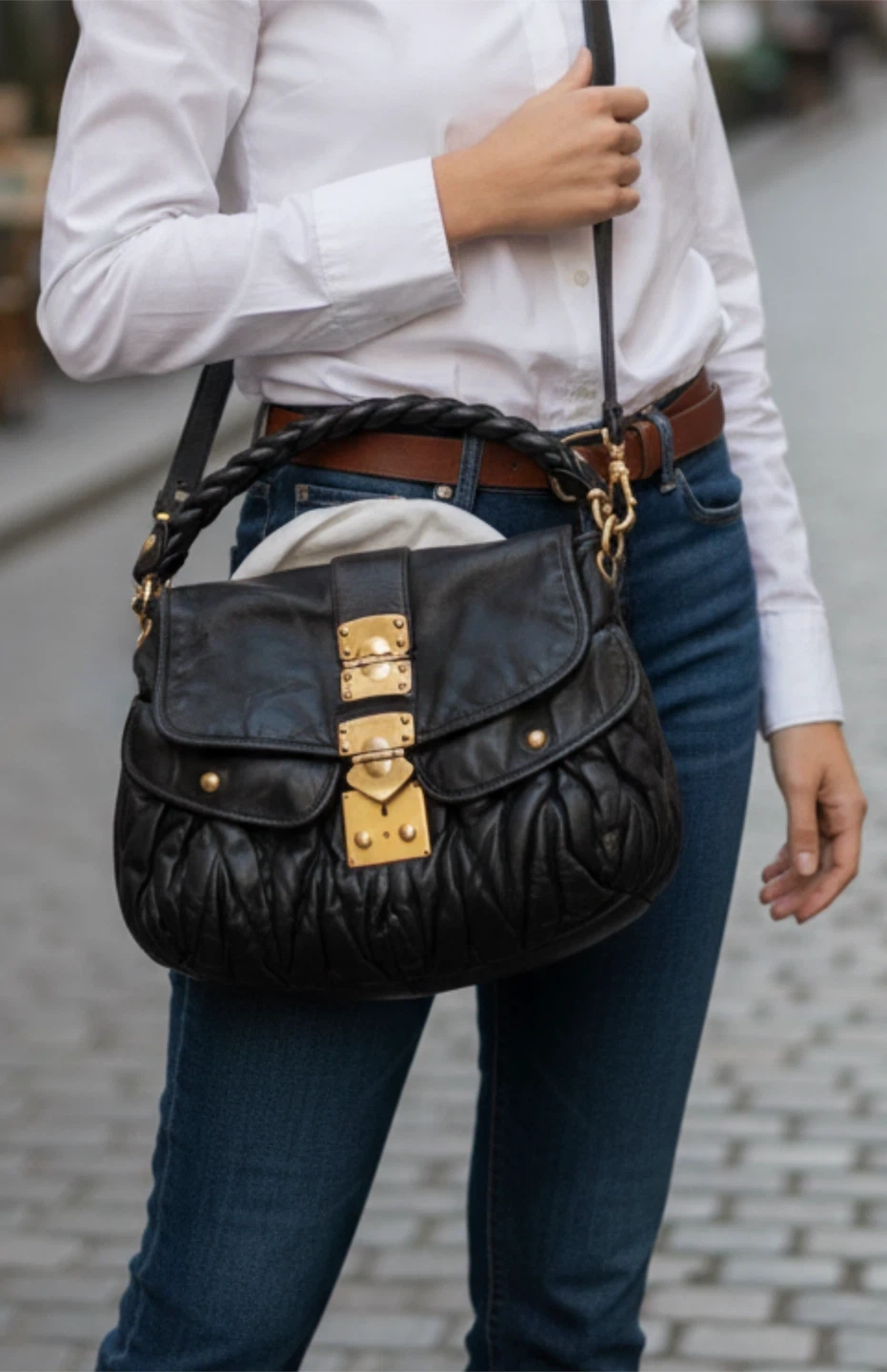 Buy & SellMiu Miu Black Leather Shoulder BagMiu Miu Black Leather Shoulder Bag$310Selling a Miu Miu black leather shoulder bag. It features gold-tone hardware and a distinctive ruched design. Comes with its original dust bag.BrandMiu MiuWHERE TO MEETCheck LocationView MapSELLERverifiedThessEast Vancouver761 review5 chats·5 favorites·223 viewsSEND CHAT TO SELLERHi Thess! I’m interested in your listing.Hi Thess! I’m interested in your listing.Get the Karrot app to chatSign In to chat