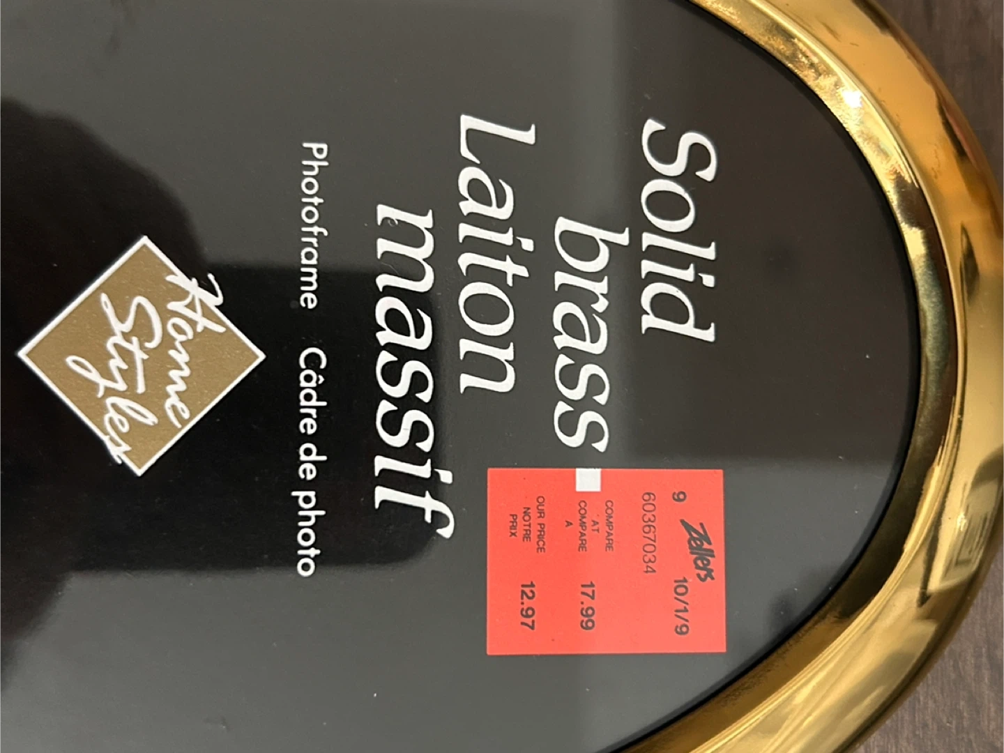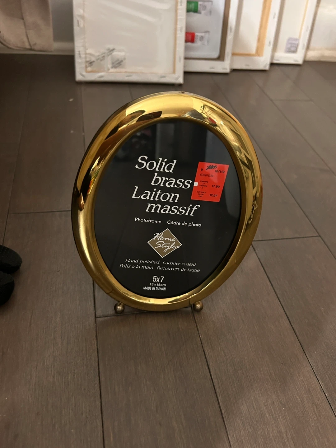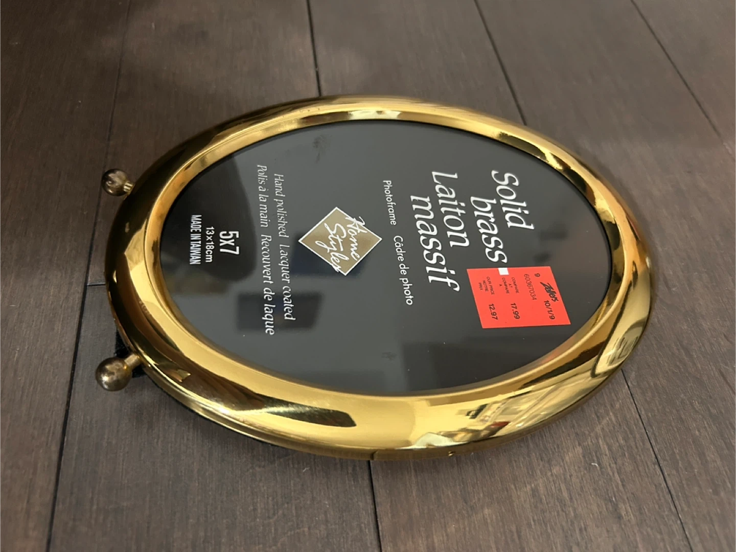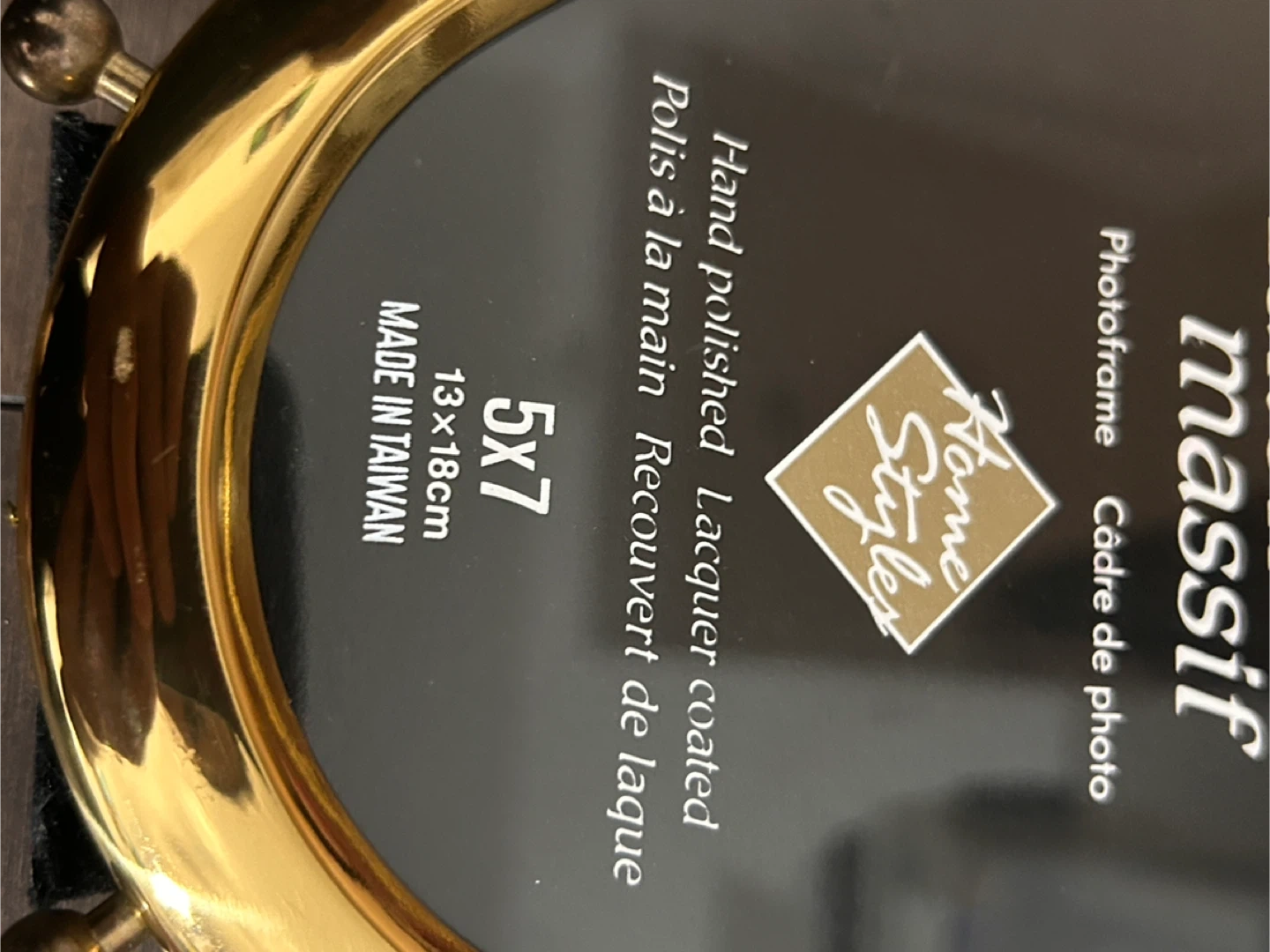Selling a beautiful Home Styles solid brass photo frame. It's hand polished and lacquer coated. The size is 5x7 (13x18cm). Originally from Zellers!