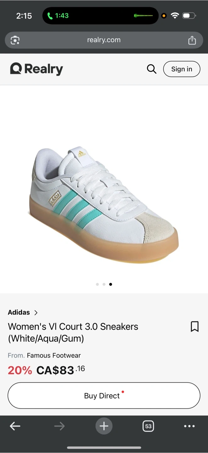 Selling a pair of Adidas VL Court 3.0 sneakers in women's size 7.5. The shoes are white with aqua stripes . Brand new