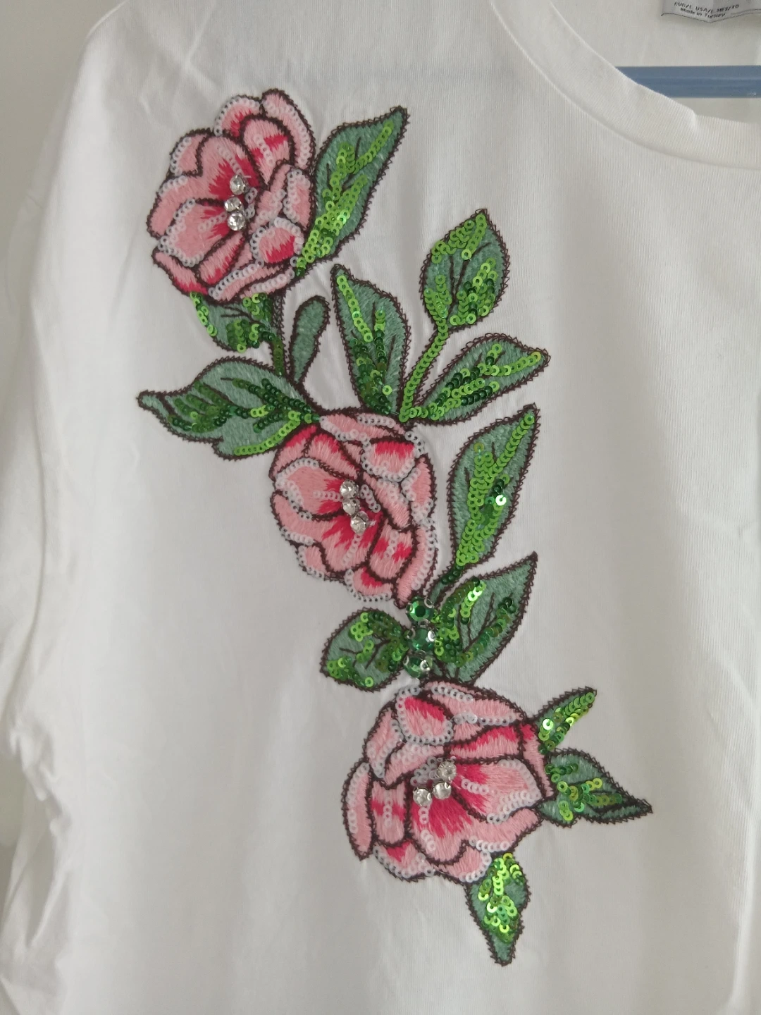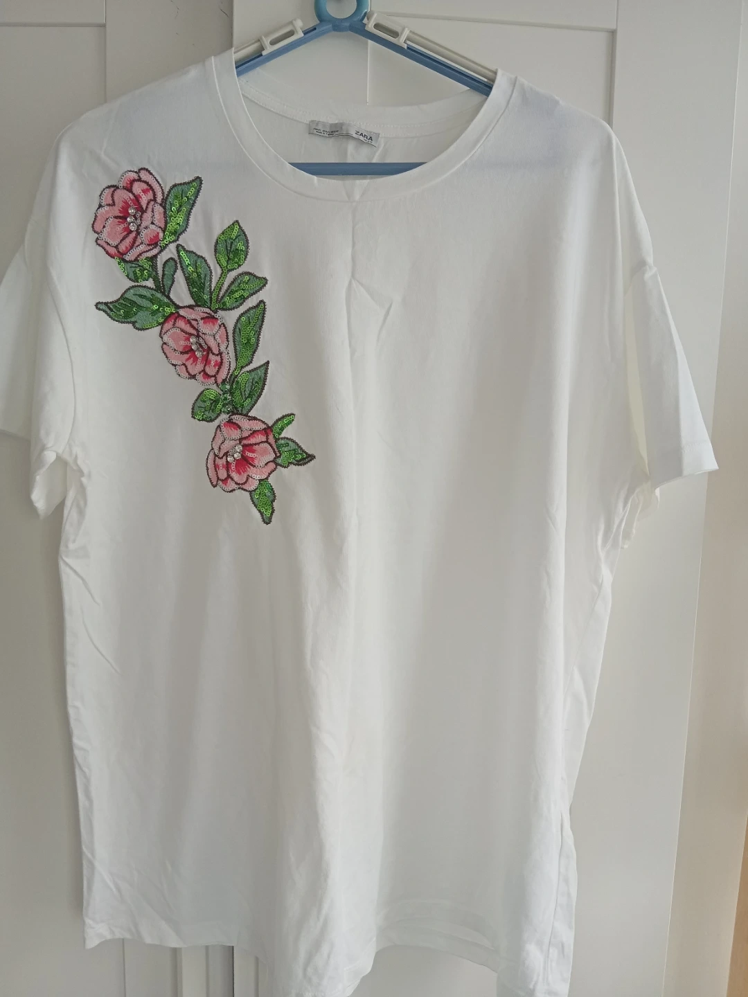 Selling a Zara white T-shirt with beautiful floral appliqué detailing! It's a size large and in great condition. Perfect for adding a touch of elegance to your casual wear