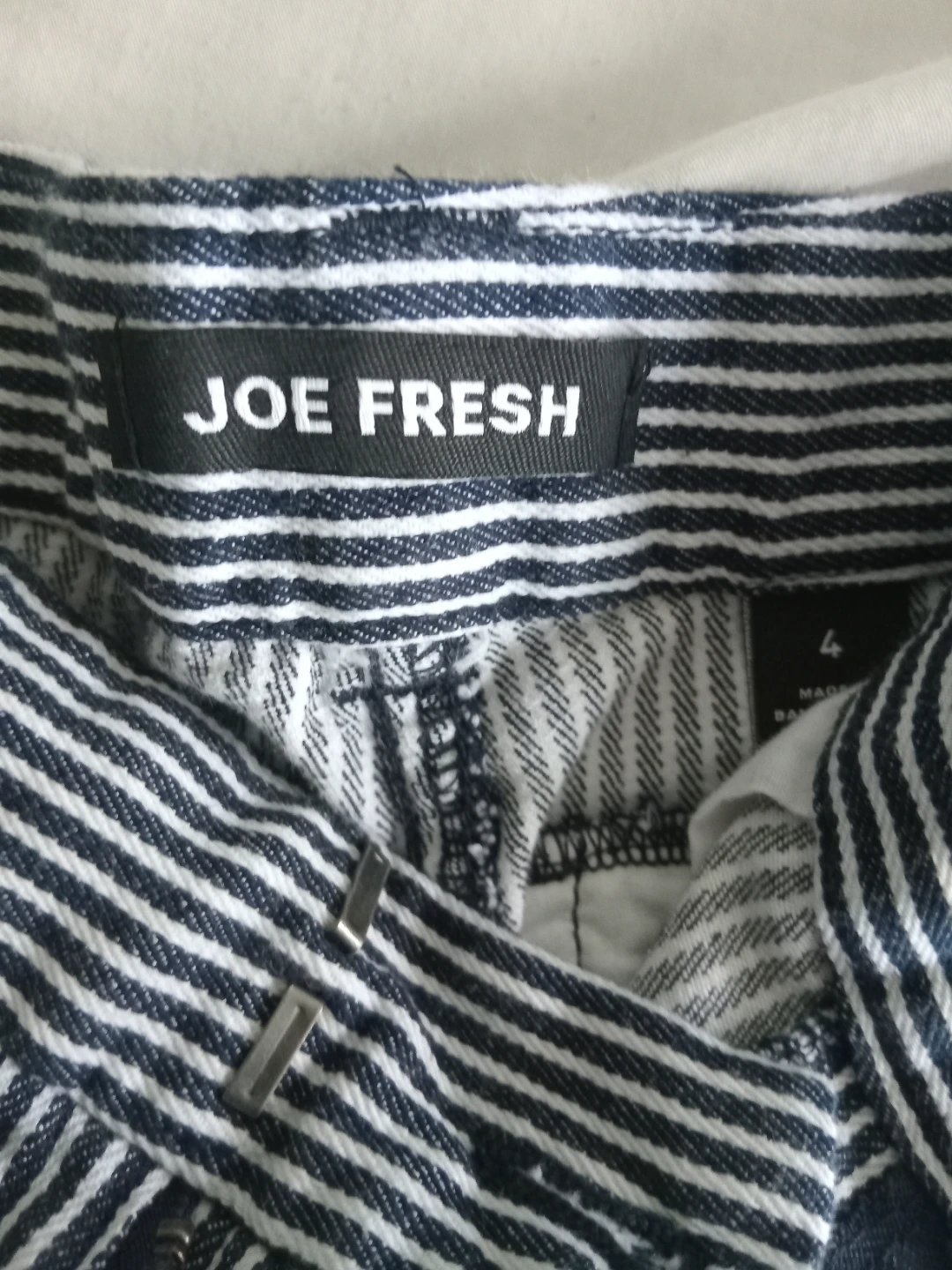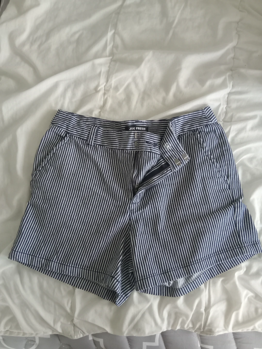 Selling a pair of Joe Fresh striped shorts in size 4! They're in great condition and feature a classic blue and white stripe pattern. Perfect for a casual summer look!