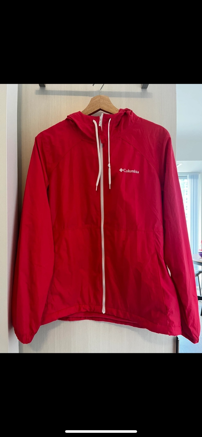 ReSelling ( bought on Karrot, but never use it ) a Columbia windbreaker, the color is pink ! It's a size small and in great condition. Perfect for those breezy days or a light jog