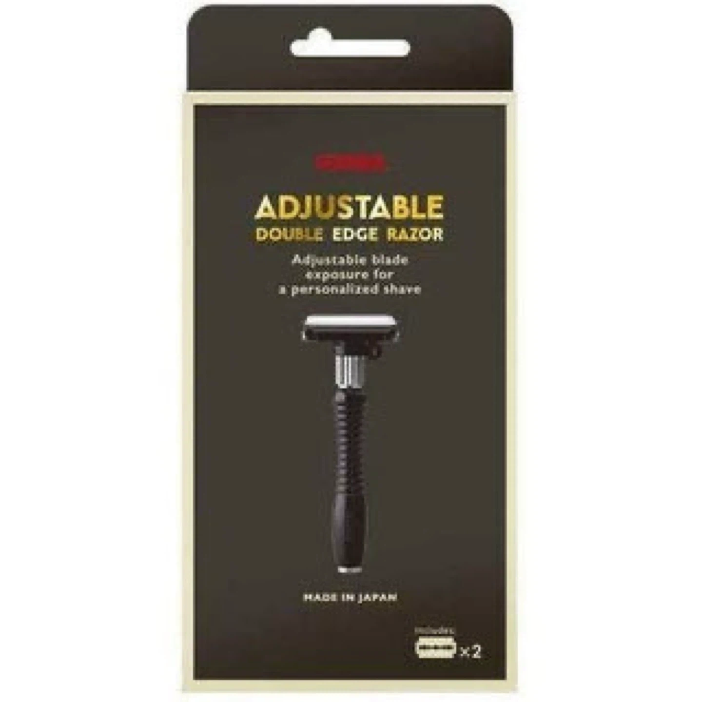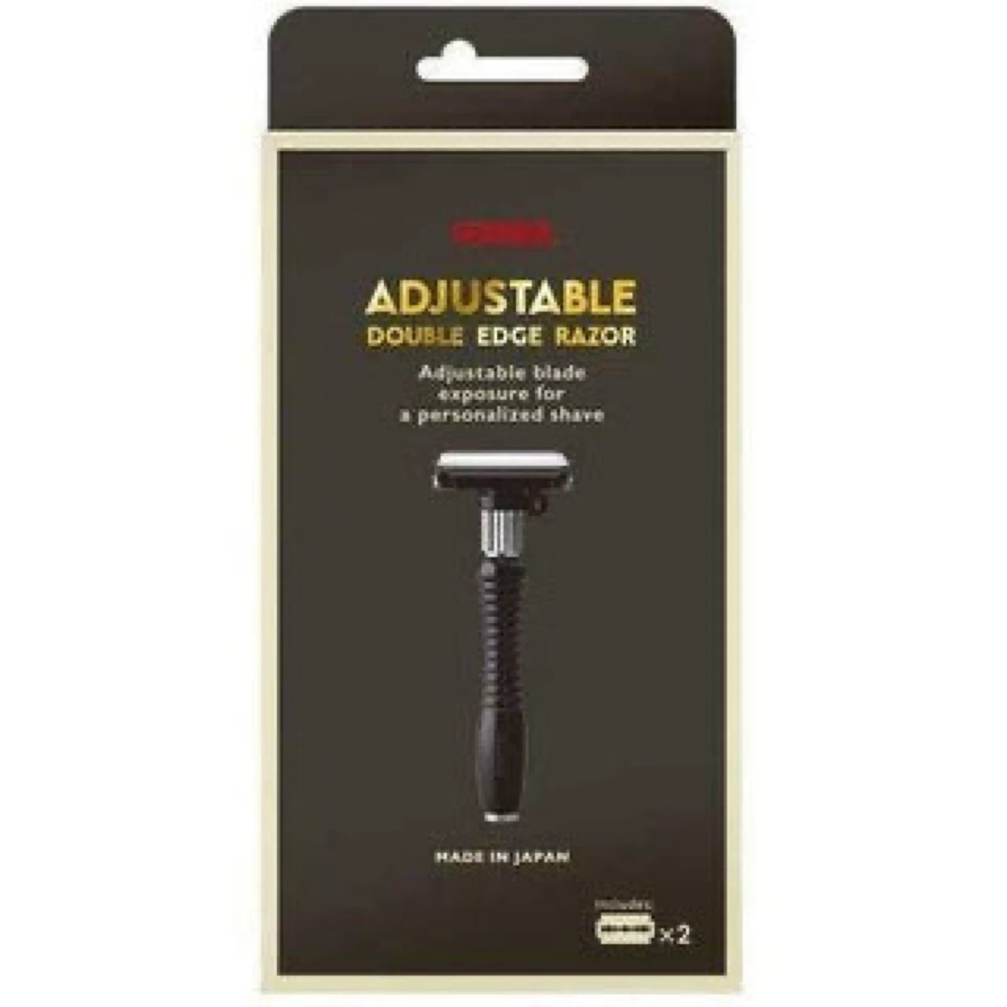 Feather Adjustable Double Edge Razor! It allows adjustable blade exposure for a personalized shave. You can choose between less or more blade exposure for either a mild or aggressive shave. Package includes 5 pcs of Feather Hi-Stainless blades for best results. Packaging design may vary between markets, but the blades are the same