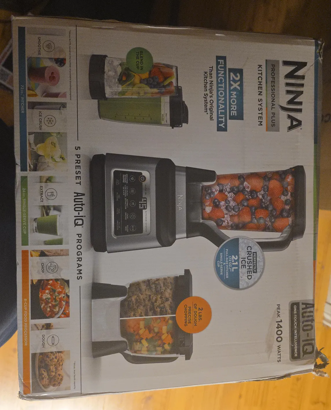 Selling a Ninja Professional Plus Kitchen System! This system has 2x more functionality than Ninja's original kitchen system. It features 5 preset Auto-iQ programs including smoothie, ice crush, extract, chop, and dough.