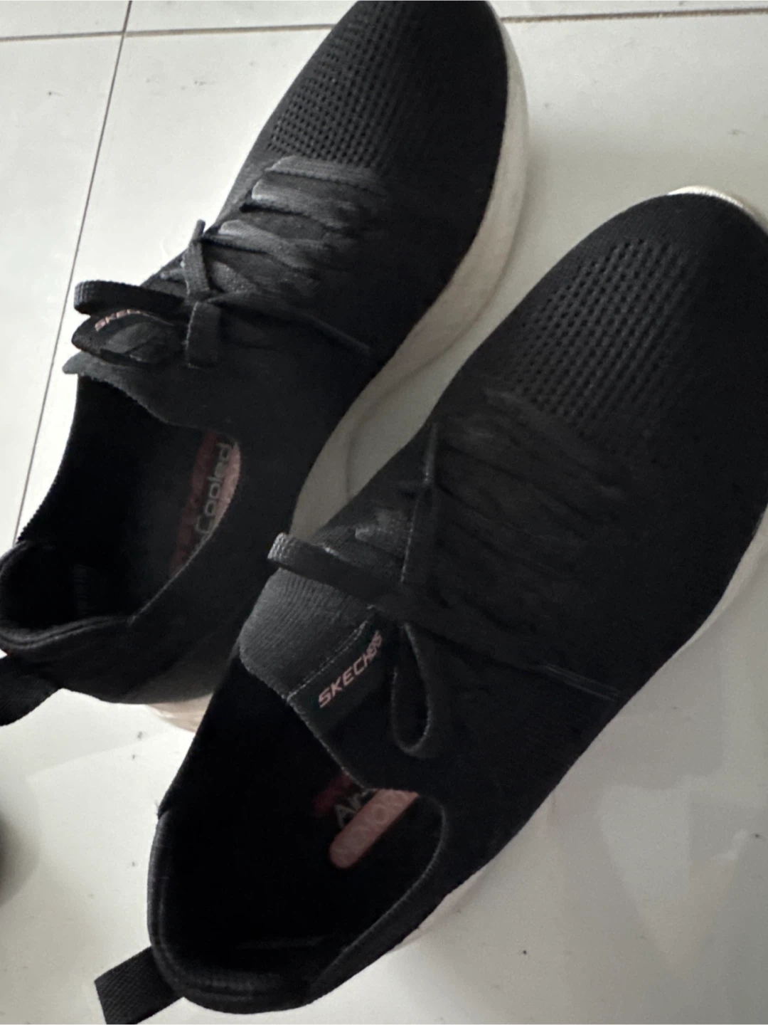 Selling a pair of Skechers women's slip-on shoes. They are black and look very comfortable!