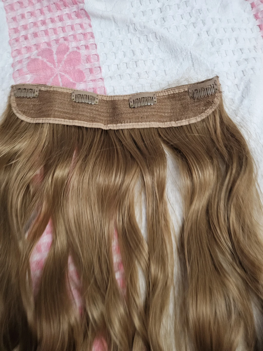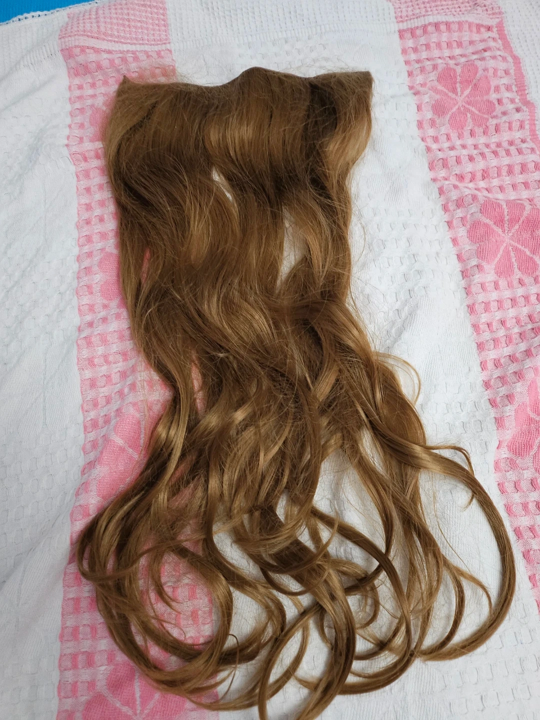 Selling a brown hair extension. It has 4 clips for easy attachment. Great for adding volume or length to your hair!