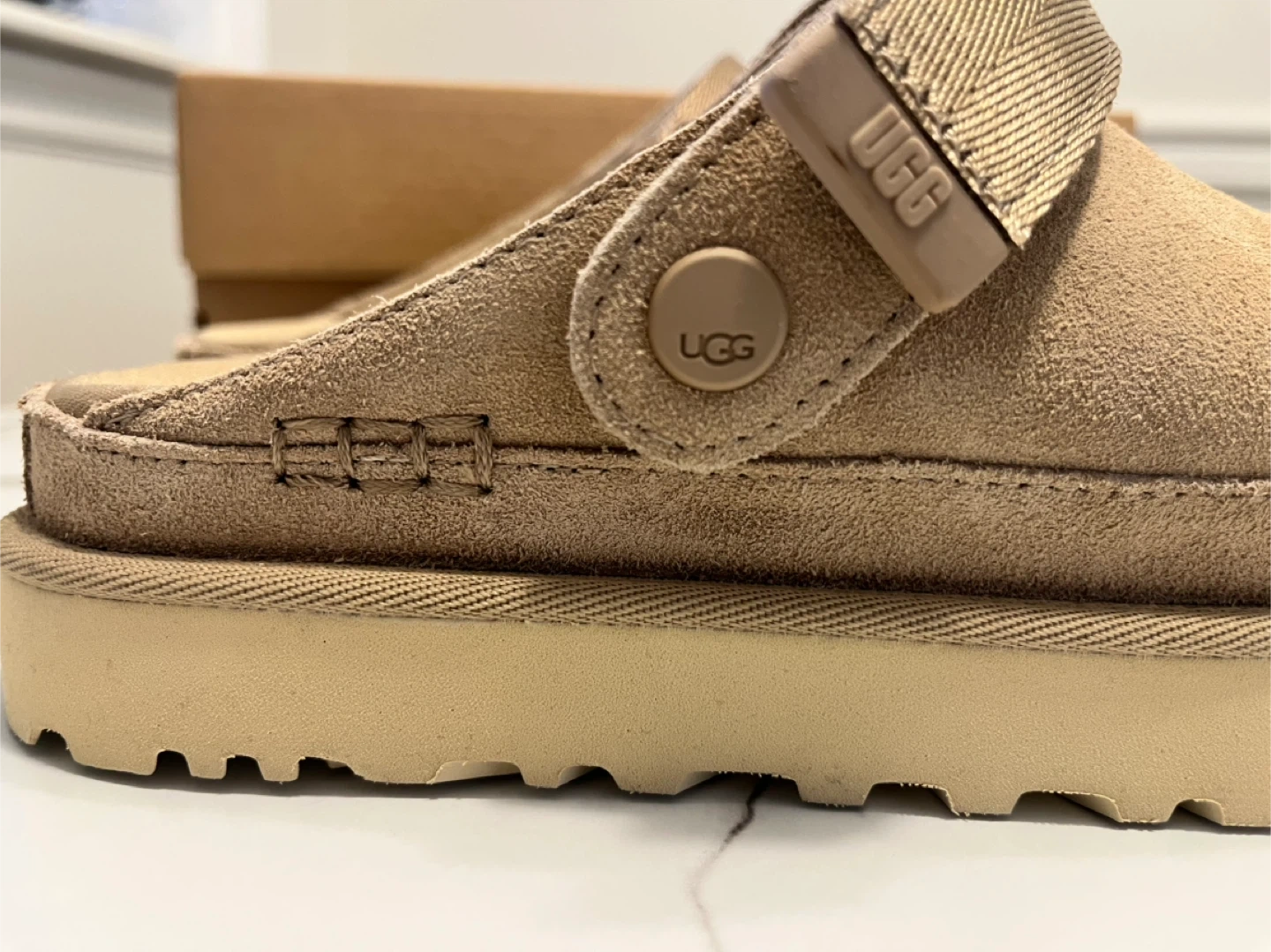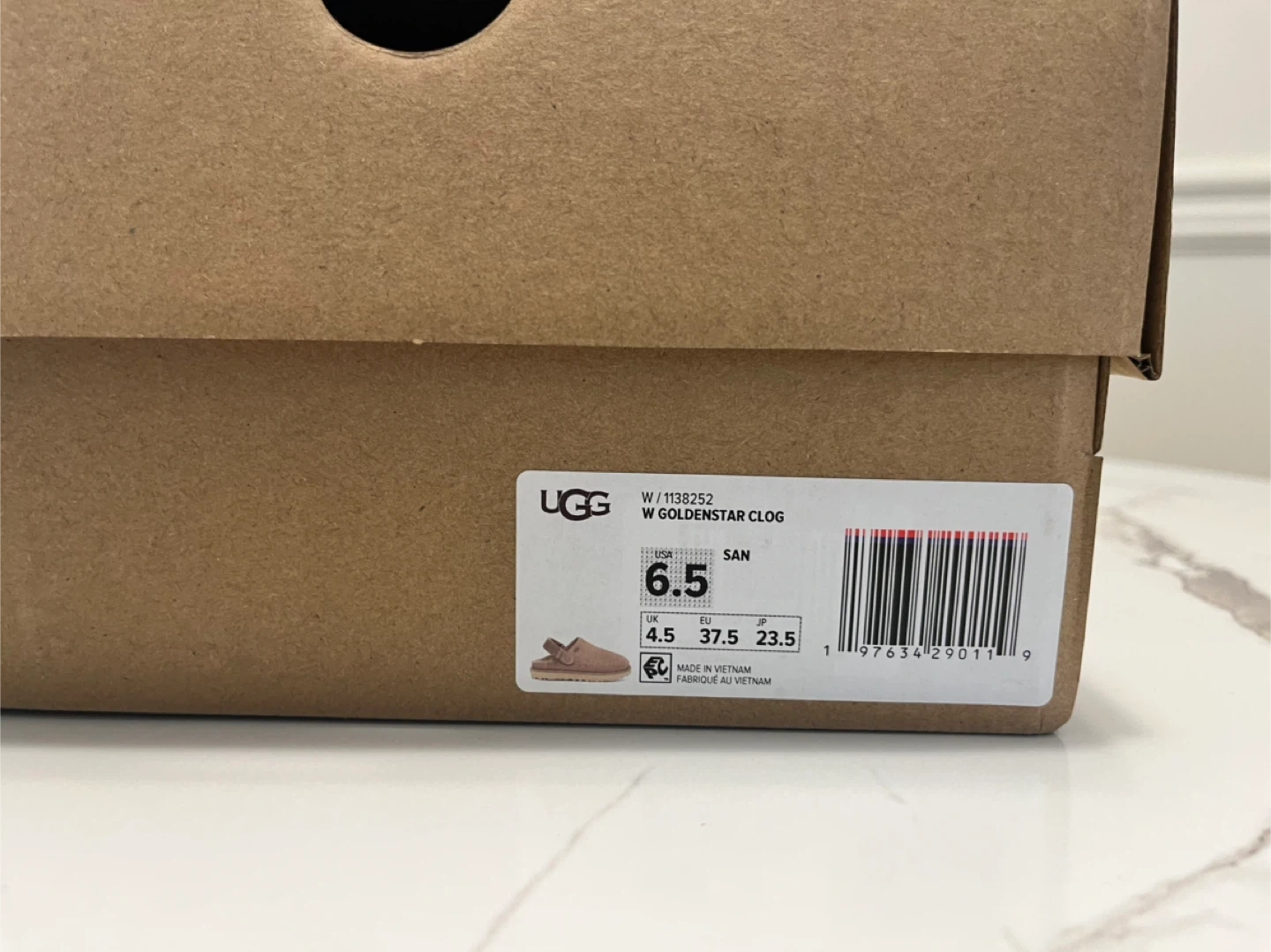 Step into comfort with these Ugg Goldenstar Clogs, a stylish and versatile footwear option in a women's size 6.5. These new clogs feature a unique design with adjustable straps for a custom fit and a durable sole for all-day wear. They are in excellent condition, ready to add a touch of effortless style to your wardrobe.