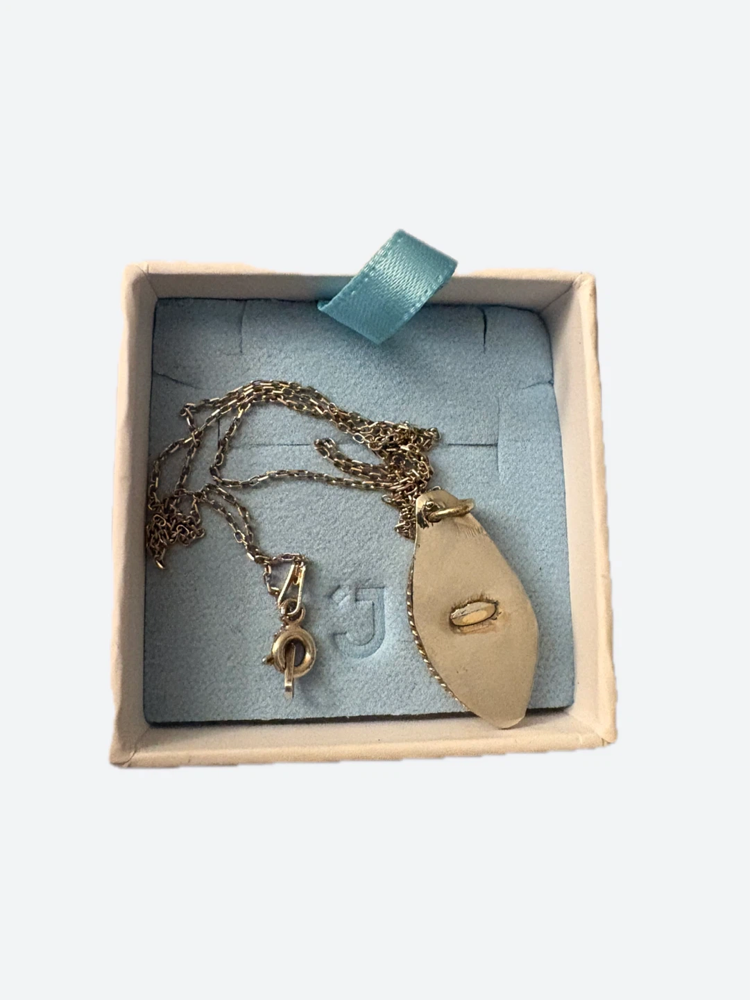Antique Silver lovely pendant necklace with a blue stone. It comes in its original box and is ready to wear!