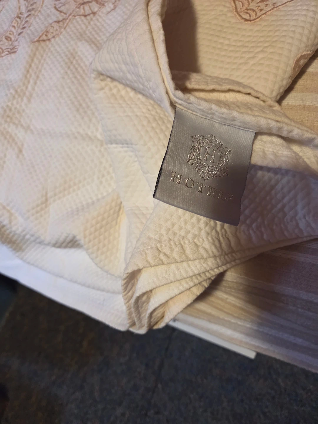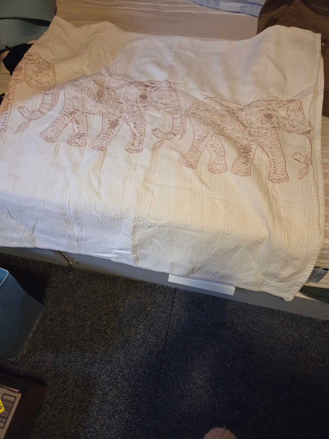 Selling a Hotel Collection throw blanket with a unique elephant pattern. The material is 70% cotton and 30% polyester, making it soft and durable. It's in great condition and would add a touch of elegance to any room