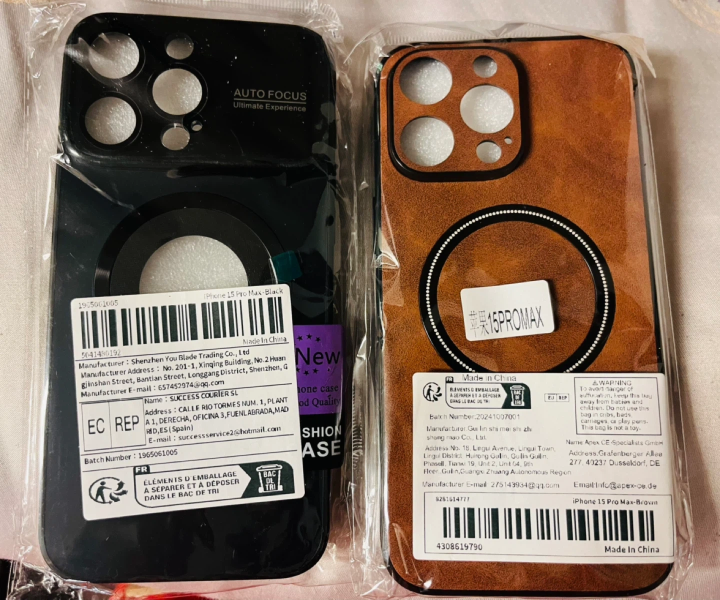 Selling a couple of iPhone 15 Pro Max cases, one in black and one in brown. Also included is a screen protector. All are brand new and still in their packaging!