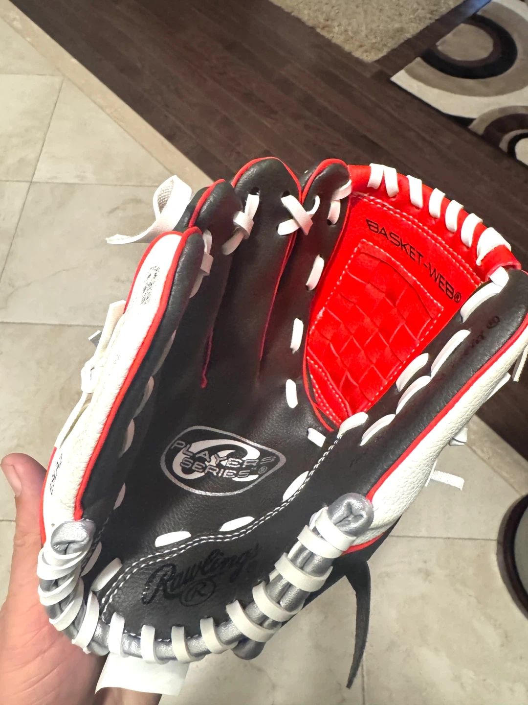 Selling a brand new Rawlings Player Series baseball glove! This glove is in excellent condition and ready for the field. It features a basket web design and is perfect for young players learning the game. The model number is PL110DSSW.