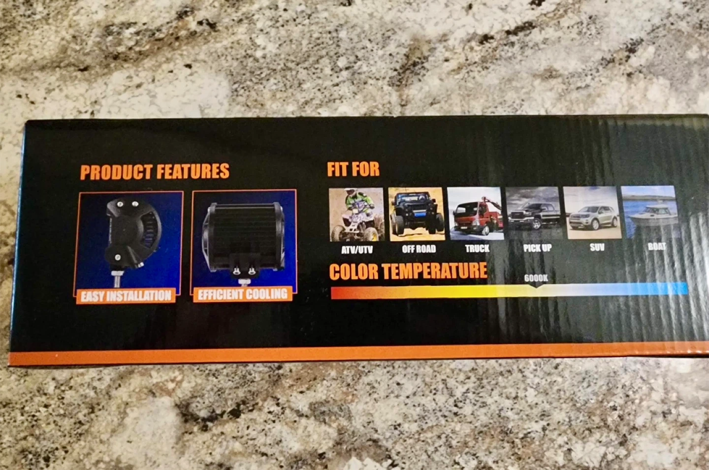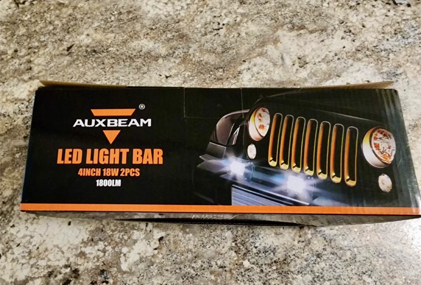 Selling a new AUXBEAM LED Light Bar. It's 4 inch, 18W, and comes in a set of 2. The light bar has 1800LM and is easy to install with efficient cooling. It's fit for ATV/UTV, Off Road, Truck, Pick Up, SUV, and Boat. The color temperature is 6000K. The box is included