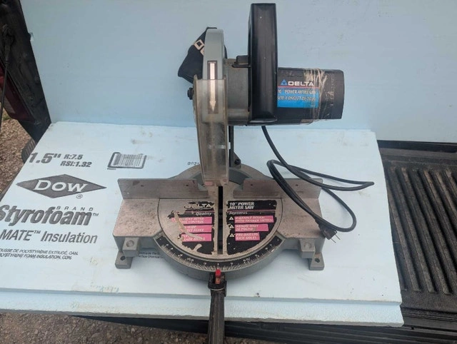This Delta 10" power miter saw is ready to tackle your next project! This saw, designed for precision and power, is perfect for cutting various angles with ease. It's in used condition, but works great for getting the job done! Specifications: * Blade Size: 10 inches * Type: Power Miter Saw * Brand: Delta This saw has been my trusty sidekick, but it’s time for it to find a new home. I’m sure it will be a great addition to your tools! Remember, if the ad is up, it’s still available! Call, text, make an offer 705-440-9159