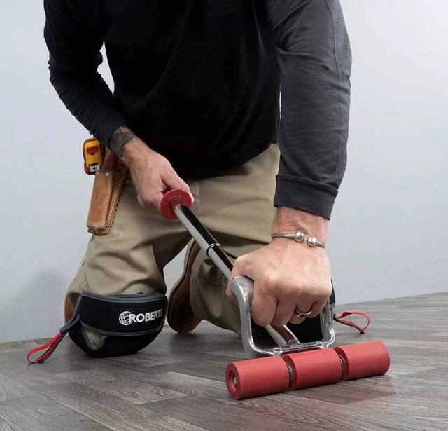 Install your floorcoverings with ease with the Extendible Floor Roller from Roberts. Designed to ensure maximum transfer of adhesive to the flooring material, this roller is designed to meet the many needs of today's professional flooring installer. A precision-ground and balanced roller, this convenient tool can be used for rolling vinyl floorcovering, carpet and wall coverings to ensure even applications. Handle extends from 17 in. to 27 in. Segmented rollers exert even pressure on uneven surfaces Non-marking rollers and inset axles won't scuff walls Lightweight, 7.5 in. compact to fit in most tool boxes Call 705-440-9159