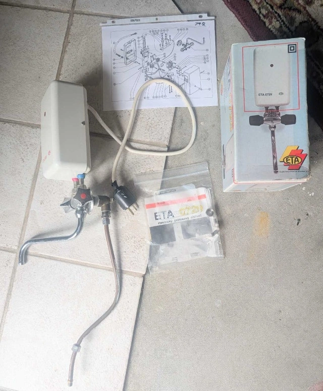Add instant hot water faucet! Two units available. One used and one brand new still in box used unit is in good working condition and instructions. Perfect for a quick and easy hot water solution. * Model: ETA 0729 * 240 volt 15 amp * Original box included * Instructions Included This little gem is ready to bring instant warmth to your sink. If the ad is up, it's still available! I'm pricing The used one at $75 And the NEW ONE at $175 I can make a deal if you buy both at once Call, text, make an offer 705-440-9159