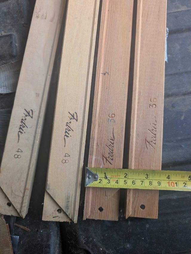 Fredrix Stretcher Bar, Standard, 2 piece , 36 Inches and 2 piece 48 Inches. One price for all four pieces. Each gallery stretcher bar measures 1-3/4 and feature a tongue-and-groove design. FREDRIX reduces waste and improves stability with the use of finger joints and all bars are knot-free. The wood is sourced from managed sustainable forests primarily in the North Western U.S. They are kiln-dried and precision cut using state-of-the-art computer driven milling machines to ensure a smooth and tight fit. Call or text, make an offer 705-440-9159