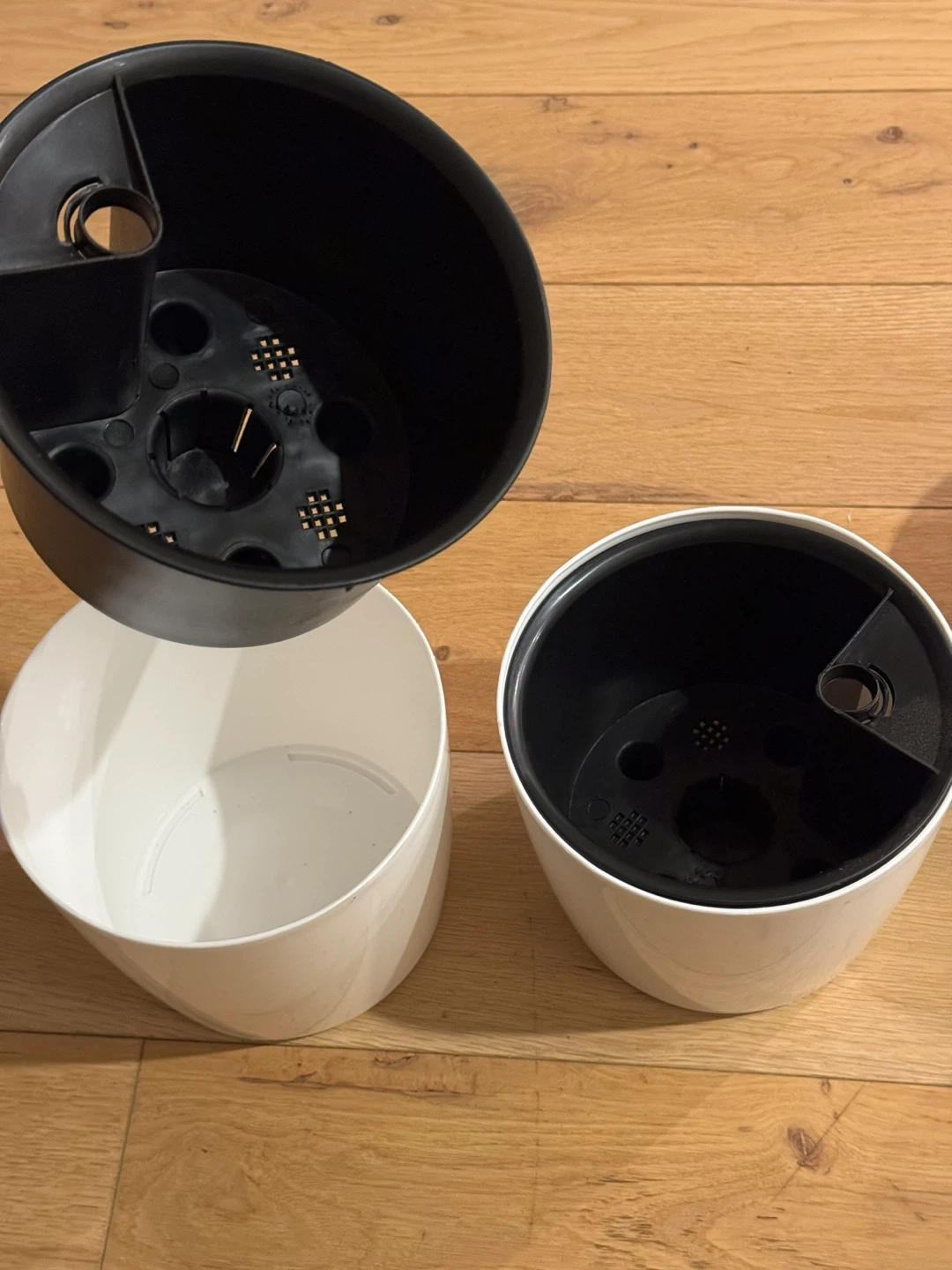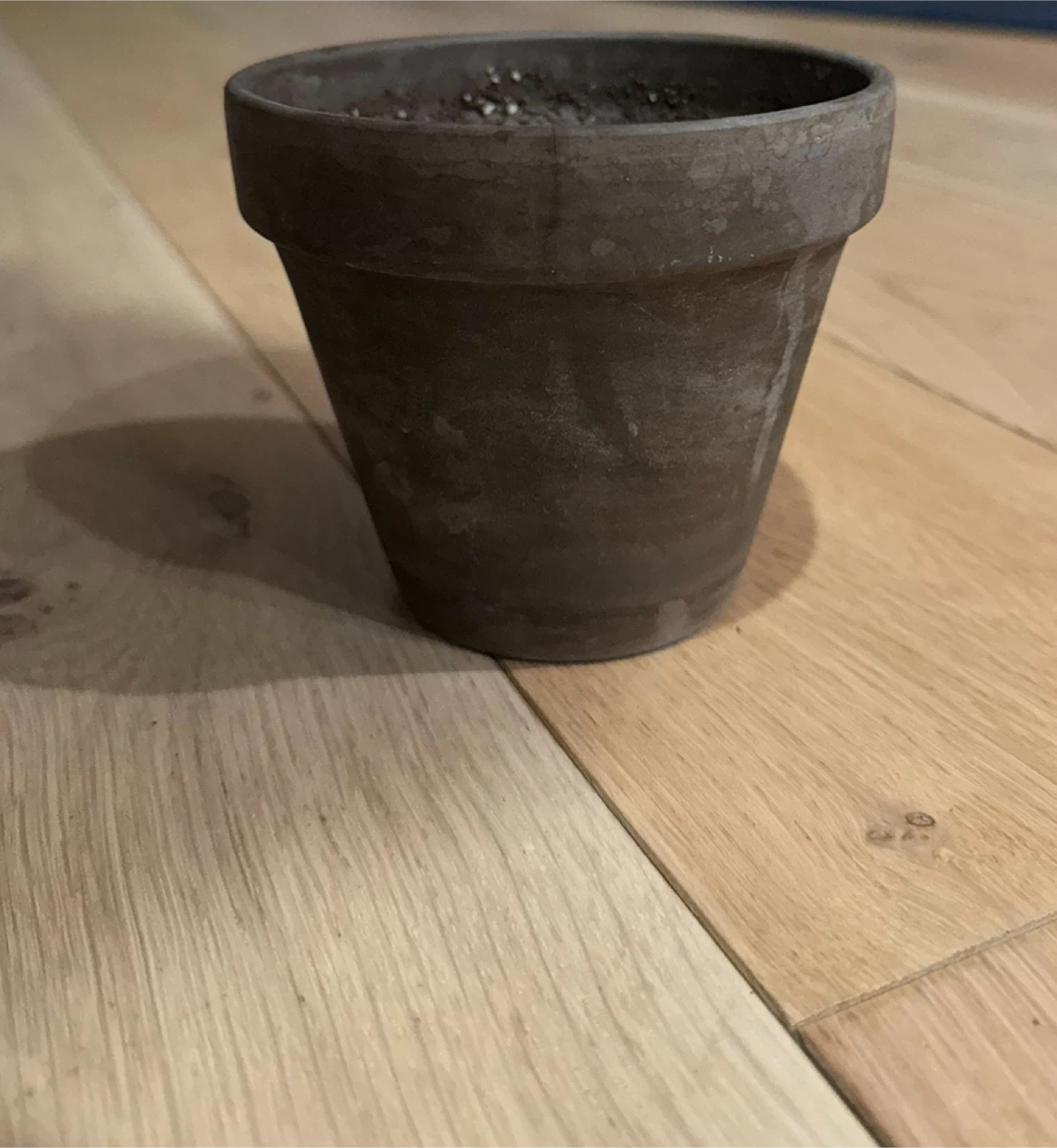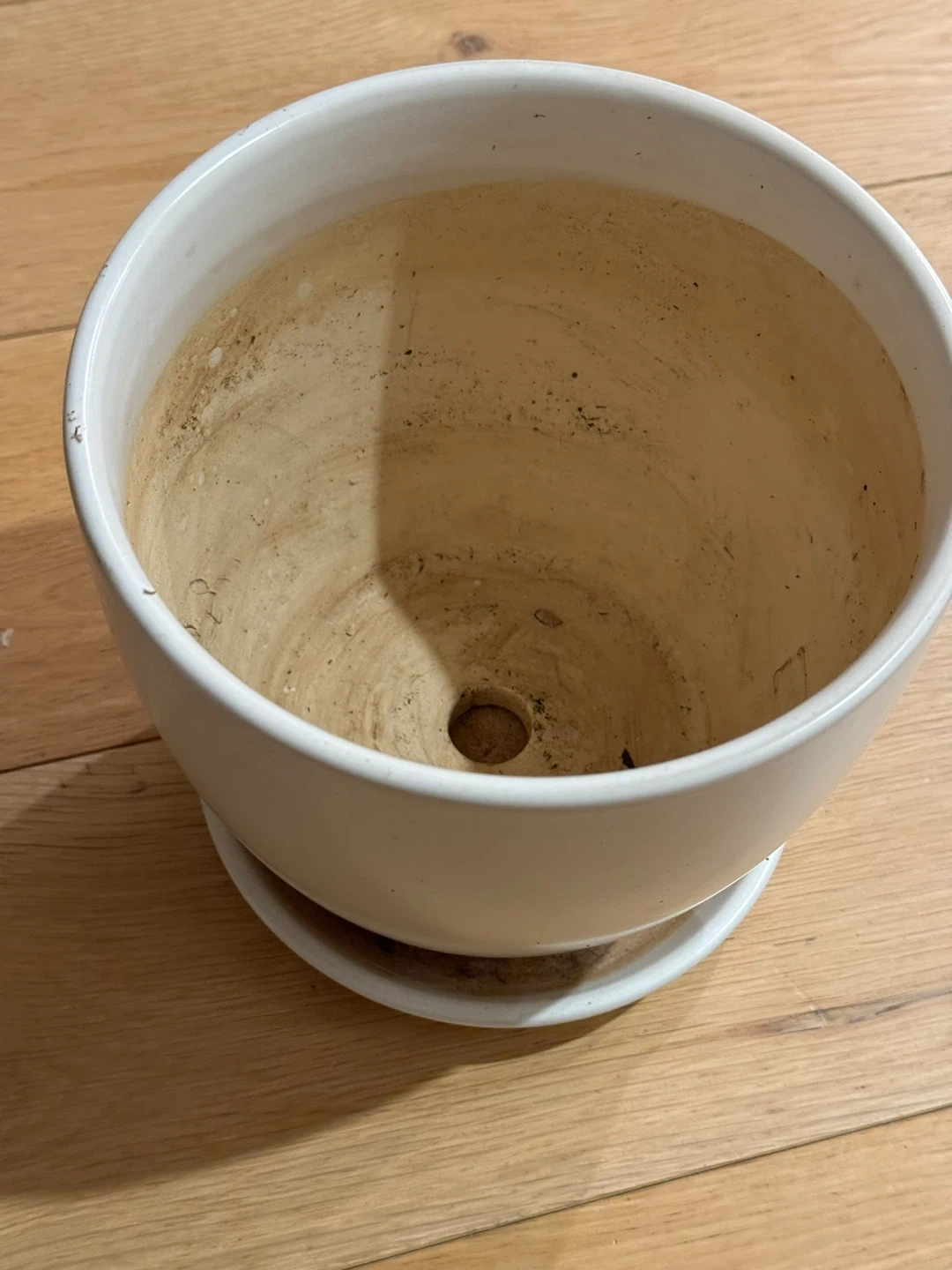 - 2 White planter pots lightweight plastic with drainage system (see photos) 6x7inch (value: $18 for 2). Untouched btw.