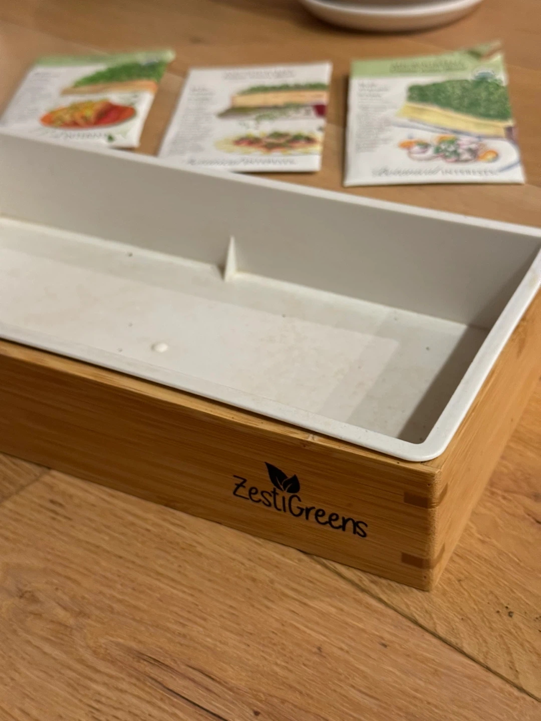 - Microgreens Growing Kit Self Watering tray ZestiGreens ( value online $40) I loved using it. Easy to use in apartment close to the sun/window.