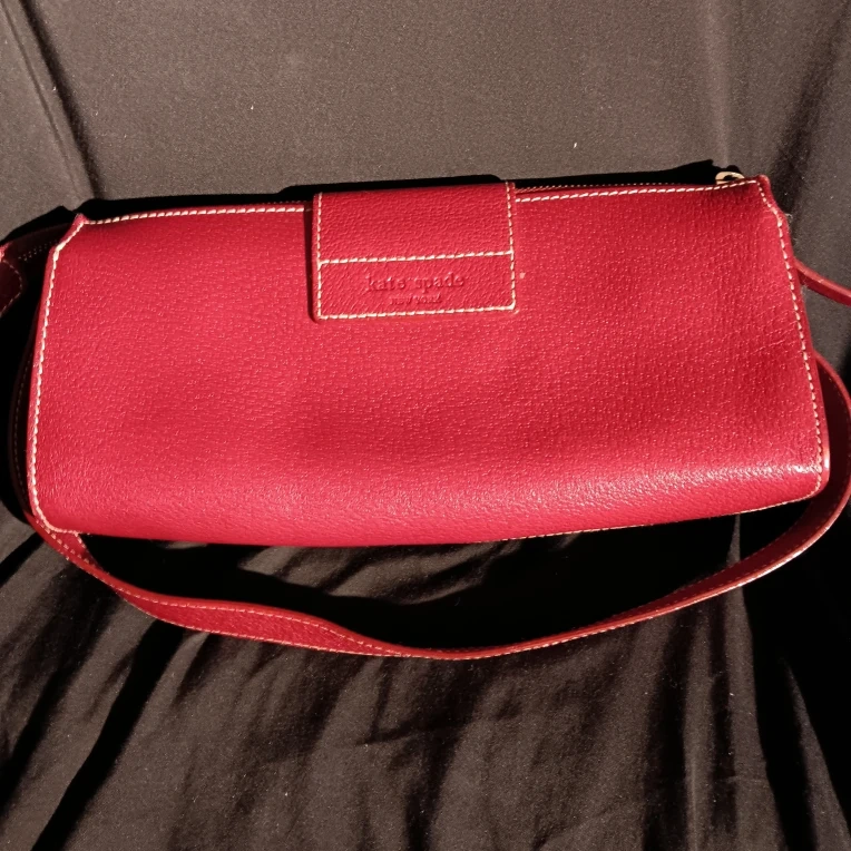Selling a Kate Spade clutch in a lovely red leather! It's in great condition and has a unique design. Perfect for a night out or special occasion