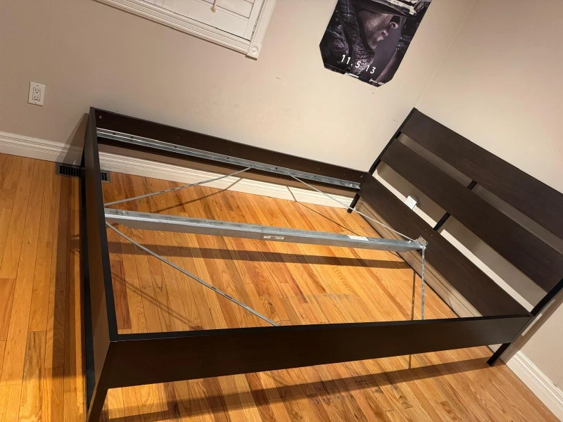 Disassembled for easier transport. This bed frame is sturdy and stylish, perfect for any bedroom setup!