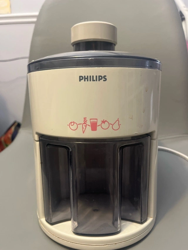 I'm selling a used Philips juicer that's perfect for making fresh and healthy juices at home. It features a powerful motor and a durable design that can handle a variety of fruits and vegetables. The juicer is in good working condition, showing normal signs of wear. It’s easy to assemble, use, and clean. Additional features: * Easy to clean * Compact design for easy storage * Efficient juice extraction Looking at similar juicers, a reasonable price range for this item is between $20 and $40. If the ad is up, it's still available. Happy juicing! Pick up only. Cash only.