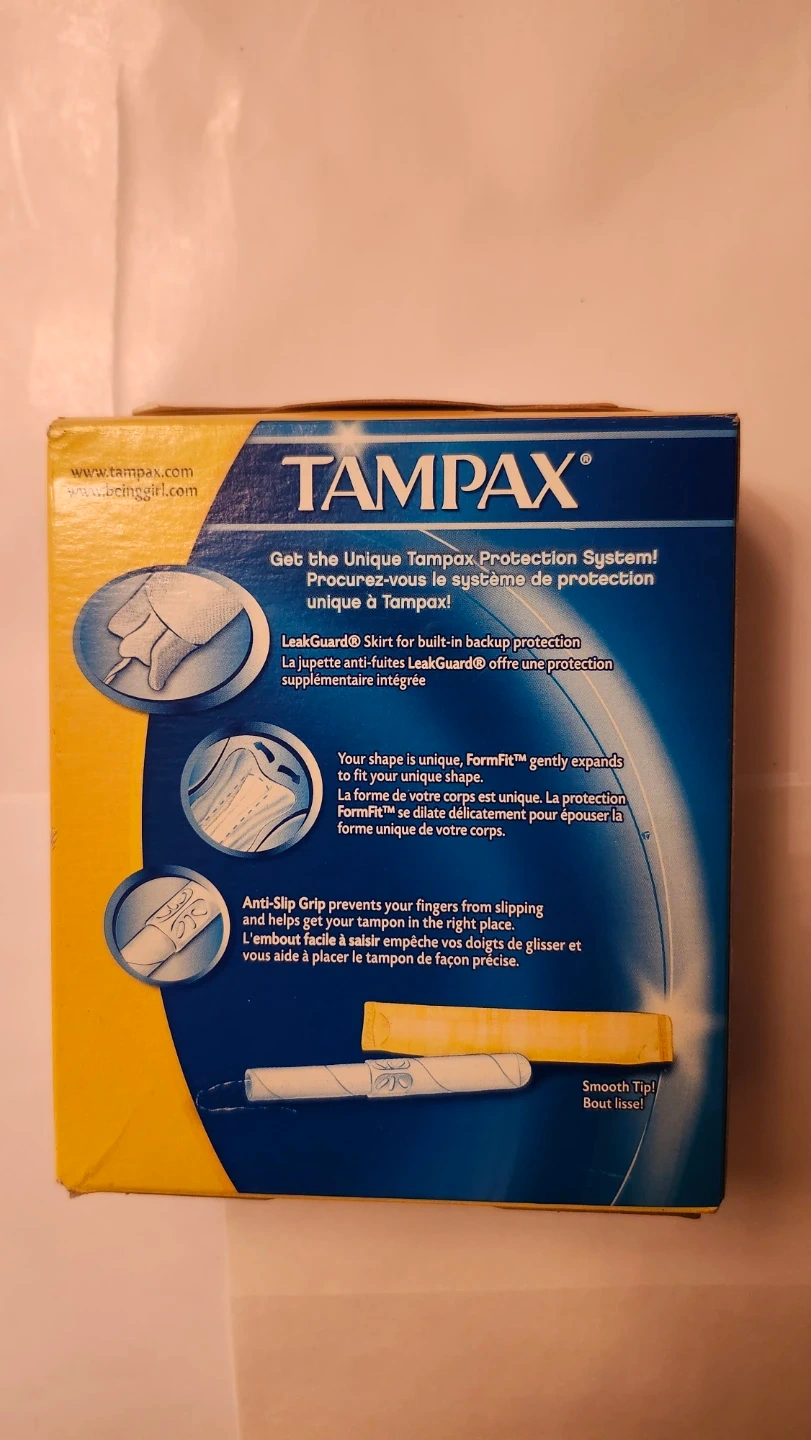 Selling a box of Tampax Regular tampons. This box contains 20 tampons with an anti-slip grip cardboard applicator. Get the unique Tampax protection system!