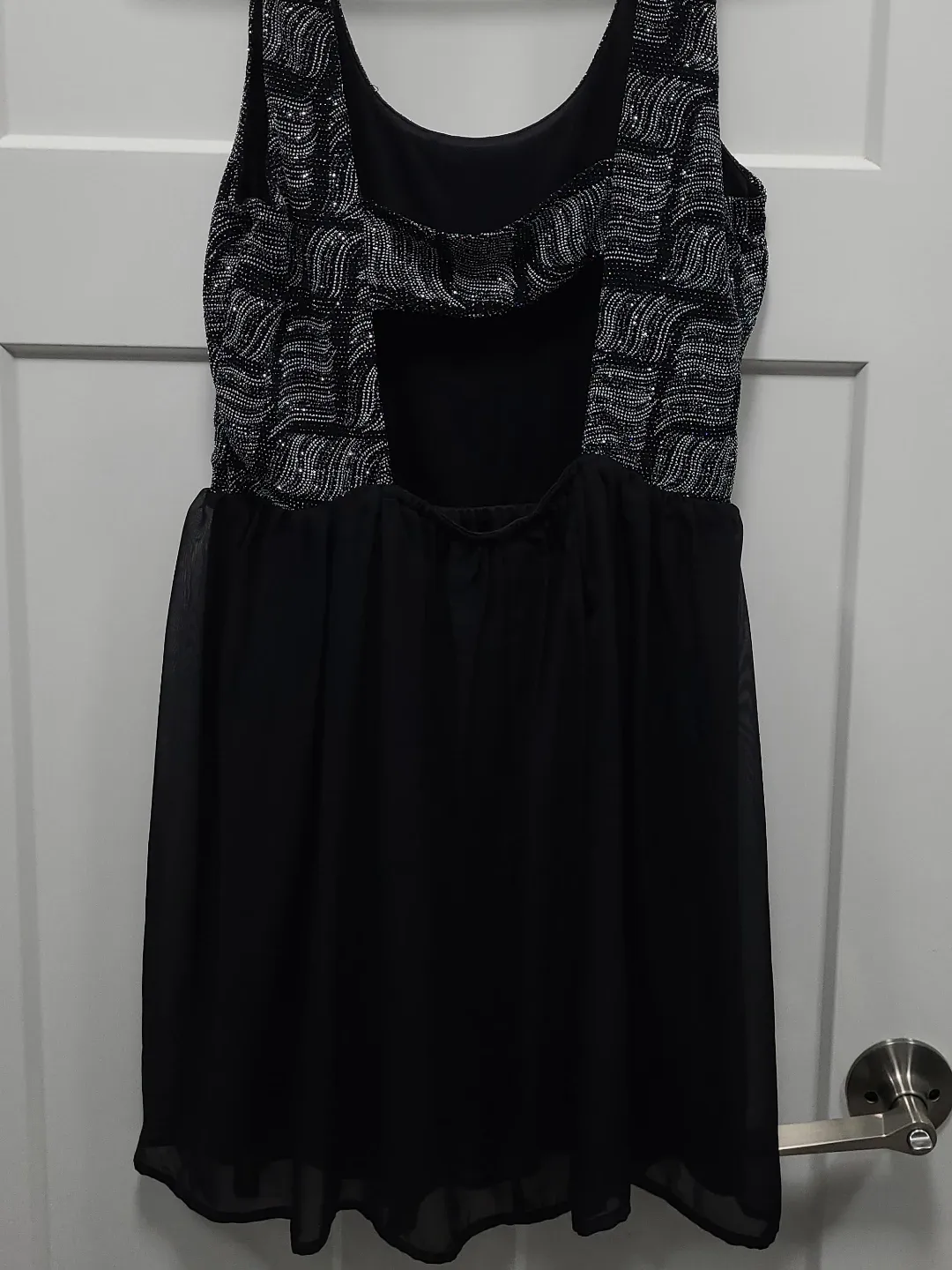 Selling a cute black dress with silver sequins on the upper portion! It's in great condition and perfect for a night out or a special occasion