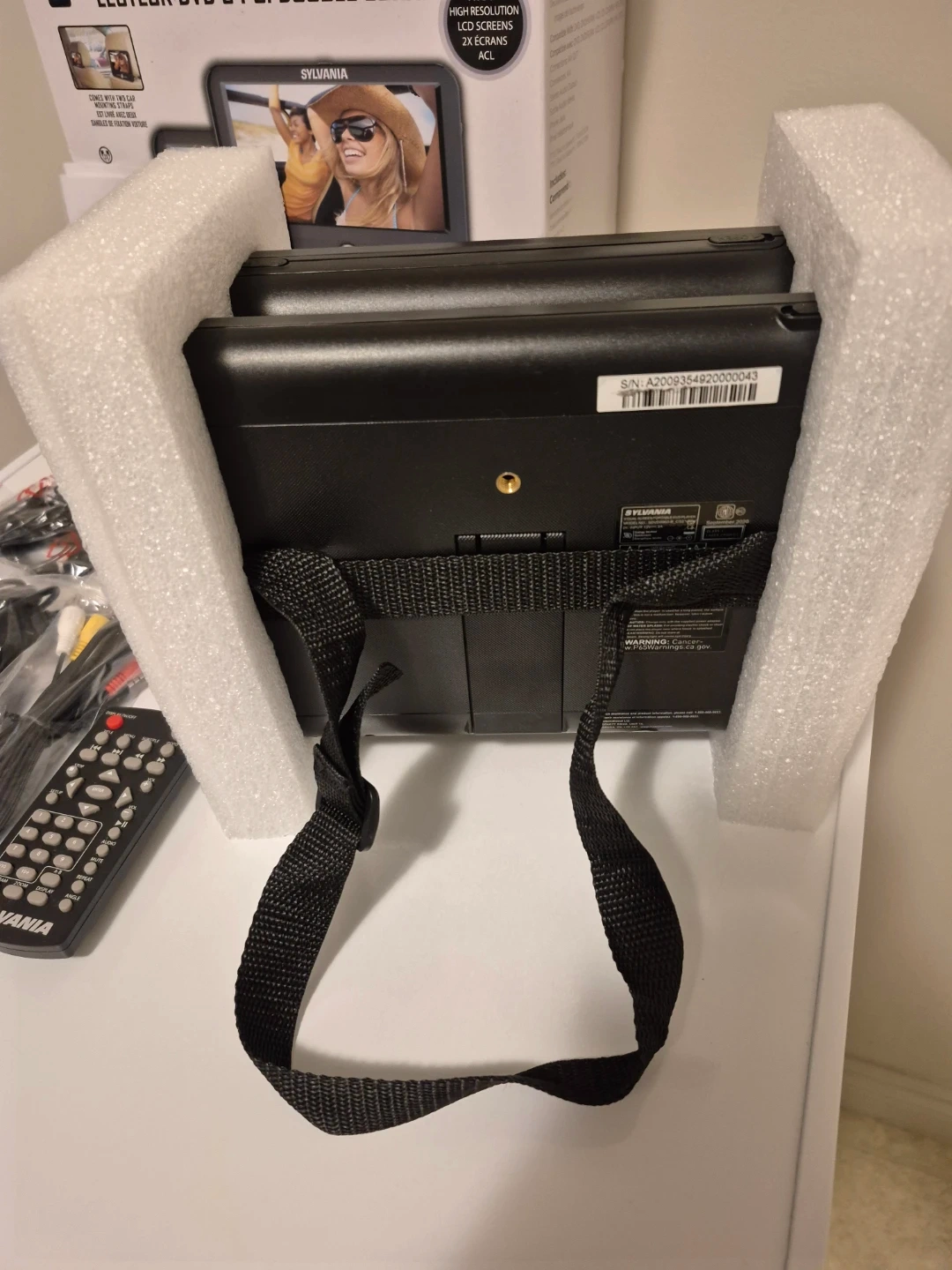 Selling a Sylvania 9" Dual Screen DVD Player (For vehicle use or anywhere else you'd like! It's in great condition and includes: