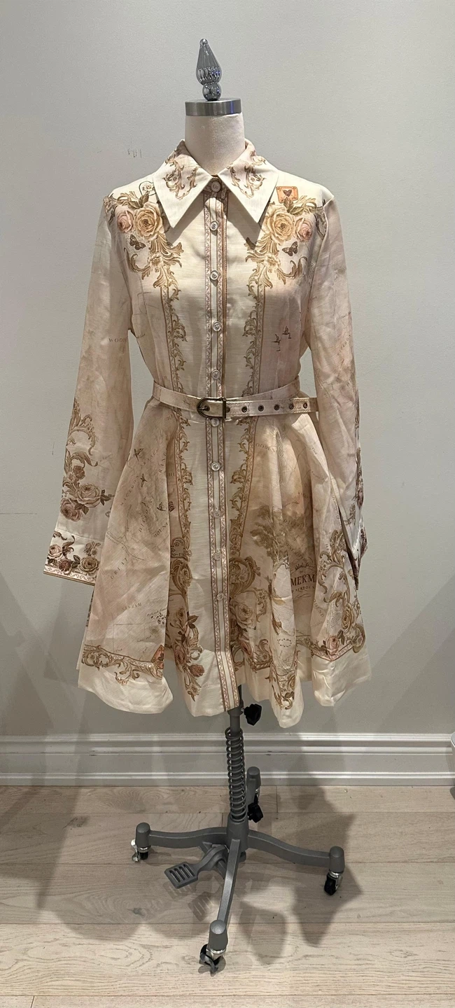 This dress features a unique map print design! It comes with a matching belt to cinch the waist and give it a flattering fit. Perfect for adding a touch of worldly elegance to your wardrobe