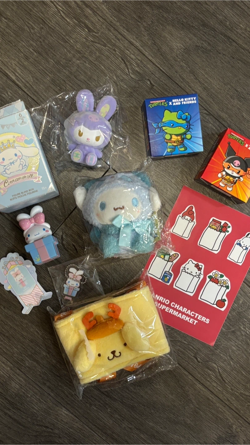 Selling a lot collection of authentic Sanrio blind boxes and plushies including Cinnamoroll, Kuromi, and Pompompurin! All items are brand new. Perfect for any Sanrio collector!
