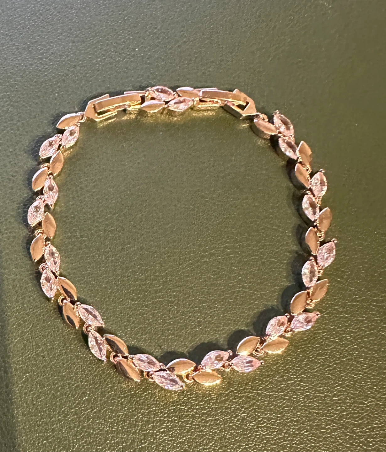 Selling a beautiful gold-tone bracelet with a leaf design. It's in great condition and would make a lovely addition to any jewelry collection!